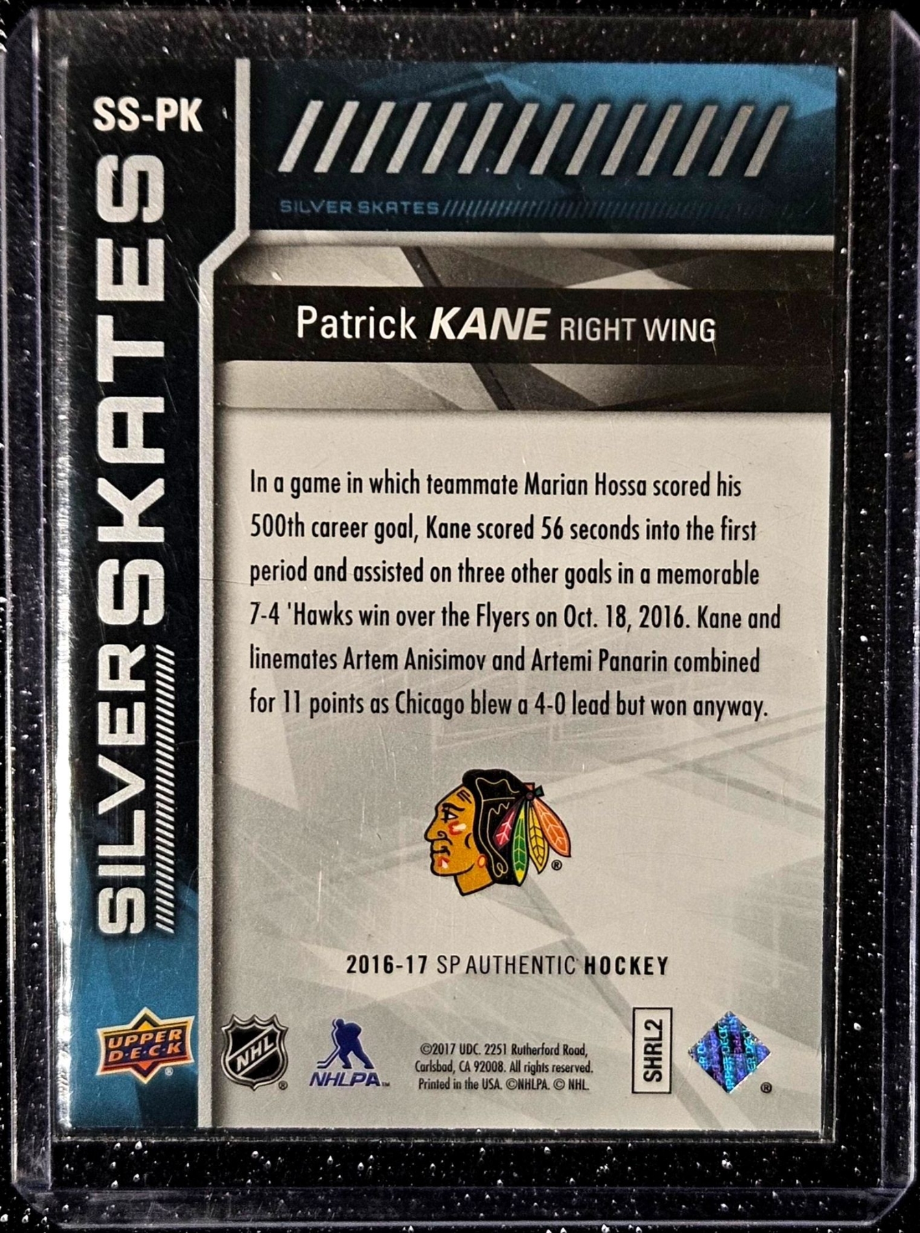 Lot 206 Patrick Kane 2016-17 Upper Deck "Silver Skates" #SS-38 Insert Hockey Card