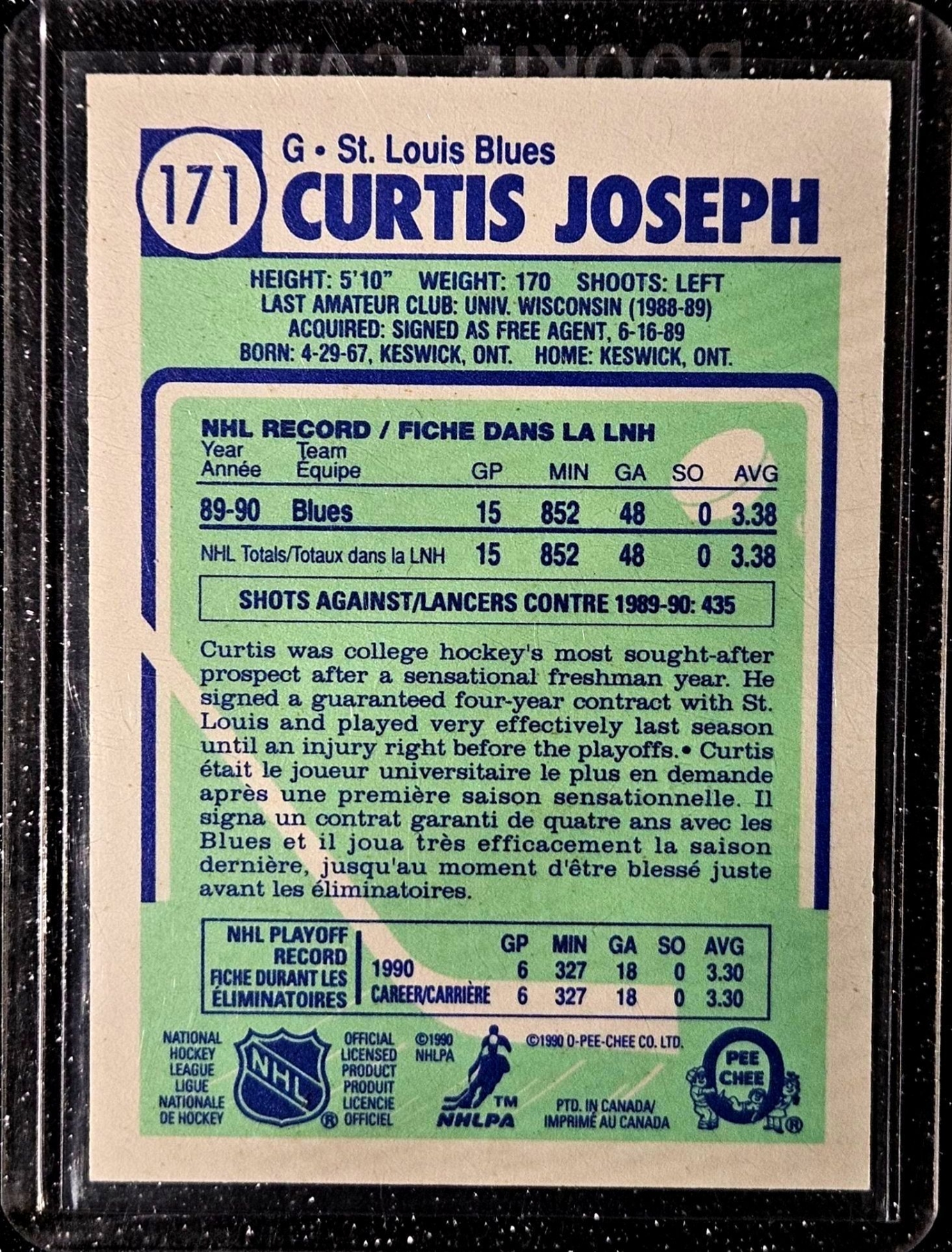 Lot 213 Curtis Joseph "CuJo" 1990-91 O-Pee-Chee Rookie Hockey Card