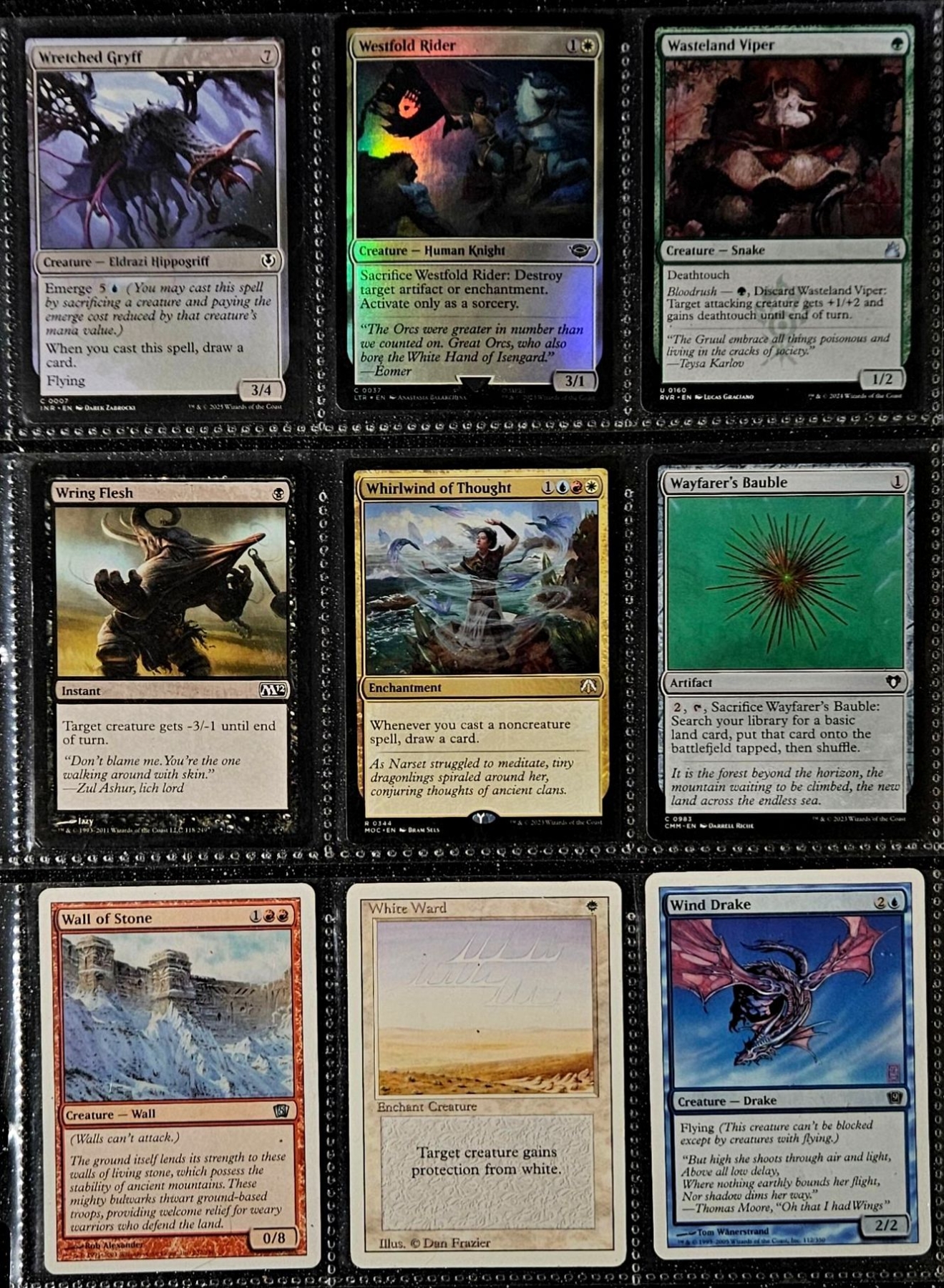 Set of three binder sleeves may contain any rarity or variant of cards. Refer to photos of items in listing for specific cards.