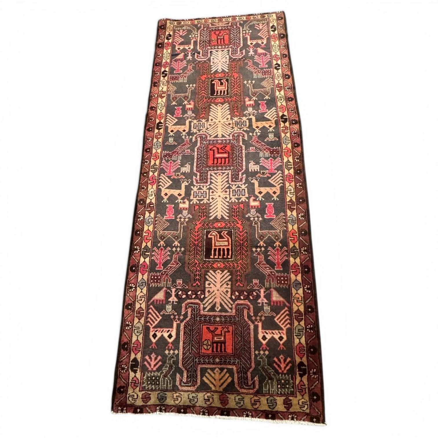 Lot 100A 100% Hand Knotted Made in Iran 319cmx116cm Ardebil Region Animals Cycle of Life Runner Carpet (387)