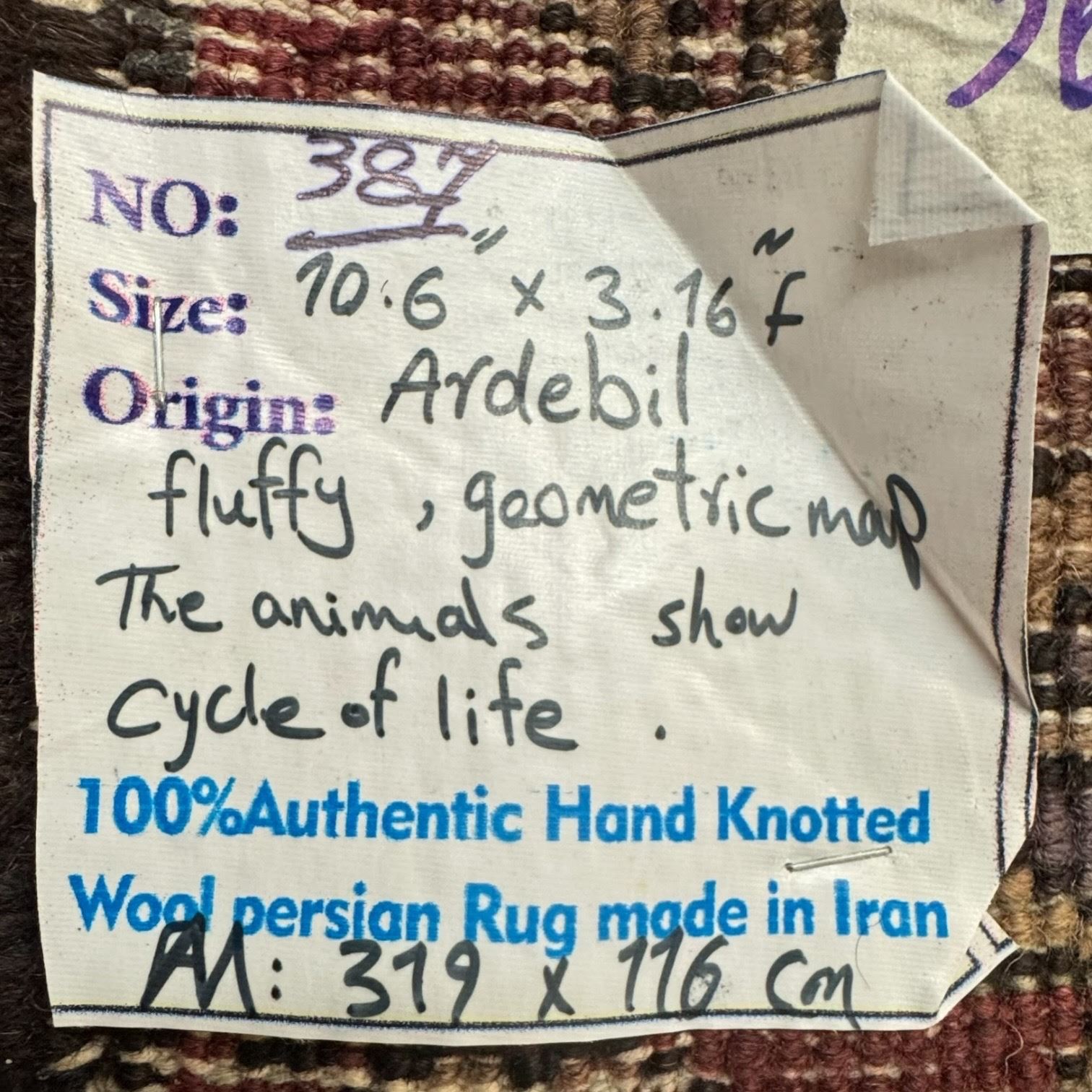 100% Hand Knotted Made in Iran 319cmx116cm Ardebil Region Animals Cycle of Life Runner Carpet (387)