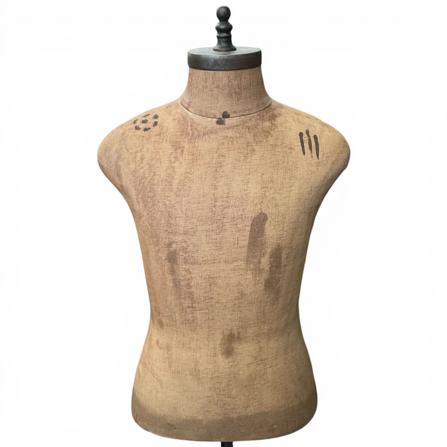Lot 2 Early 20th Century Fabric Covered Dress Mannequin with Cast Iron Base and Adjustable Height 63" Tall