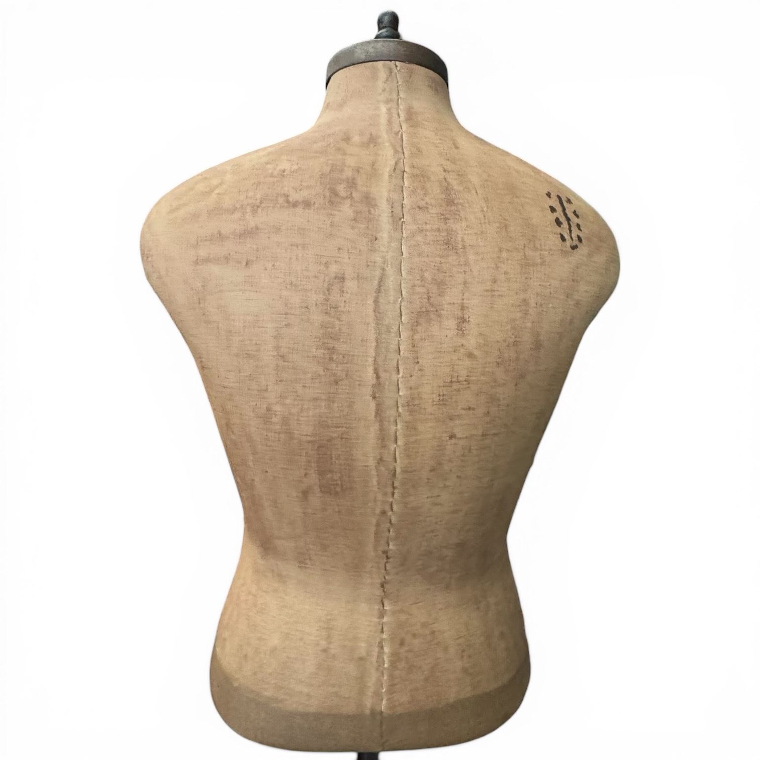 Early 20th Century Fabric Covered Dress Mannequin with Cast Iron Base and Adjustable Height 63" Tall