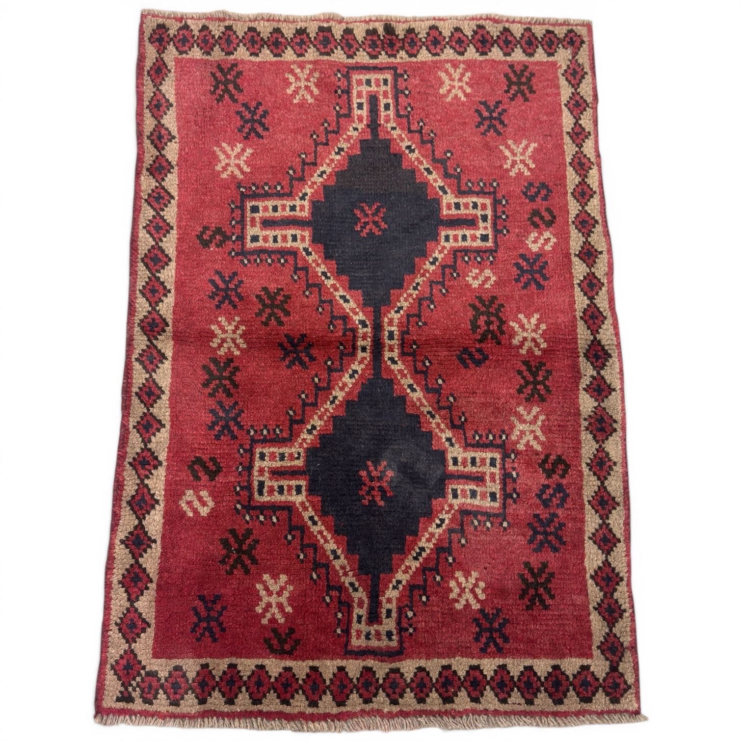100% Hand Knotted Made in Iran 4'x2'8" Shiraz Region Geometric Map Fluffy Rug (380)