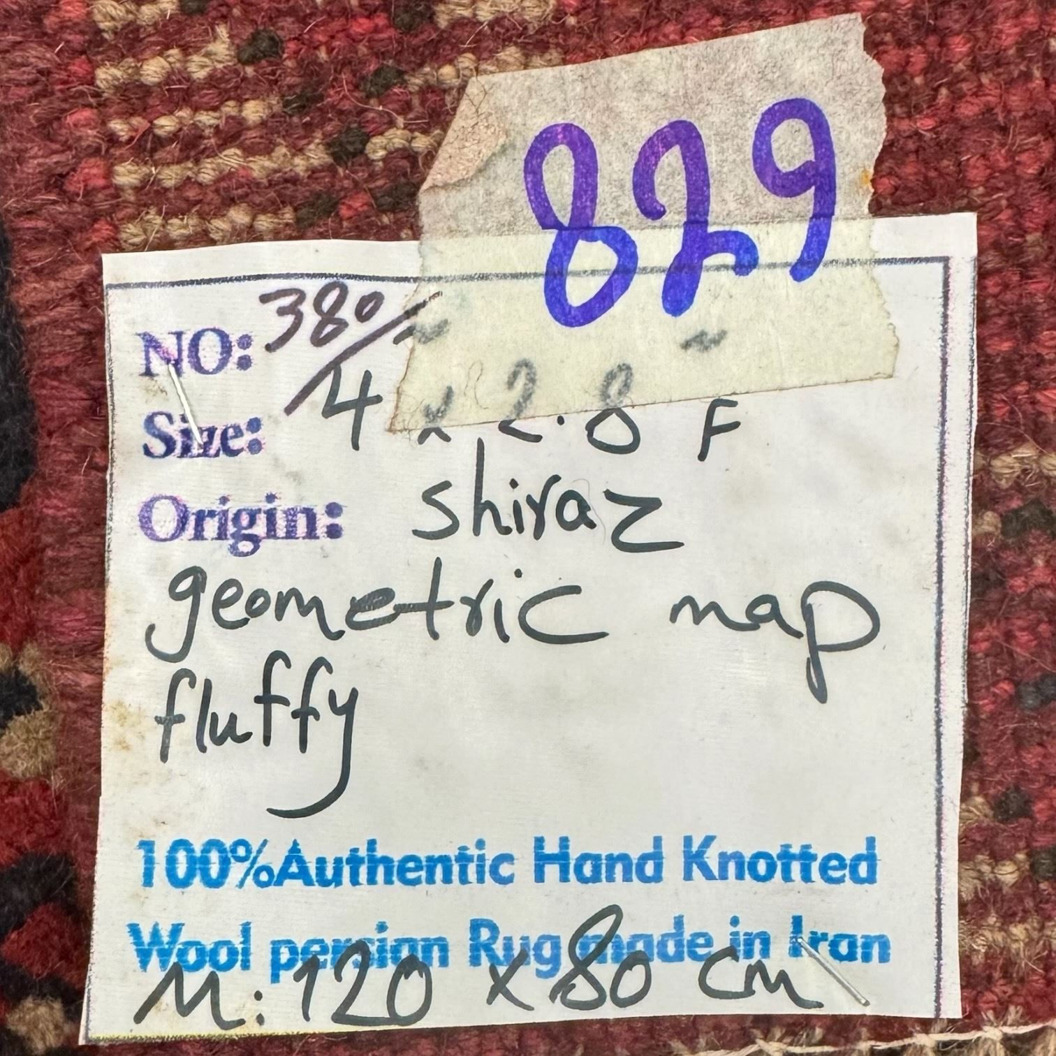 Lot 250A 100% Hand Knotted Made in Iran 4'x2'8" Shiraz Region Geometric Map Fluffy Rug (380)