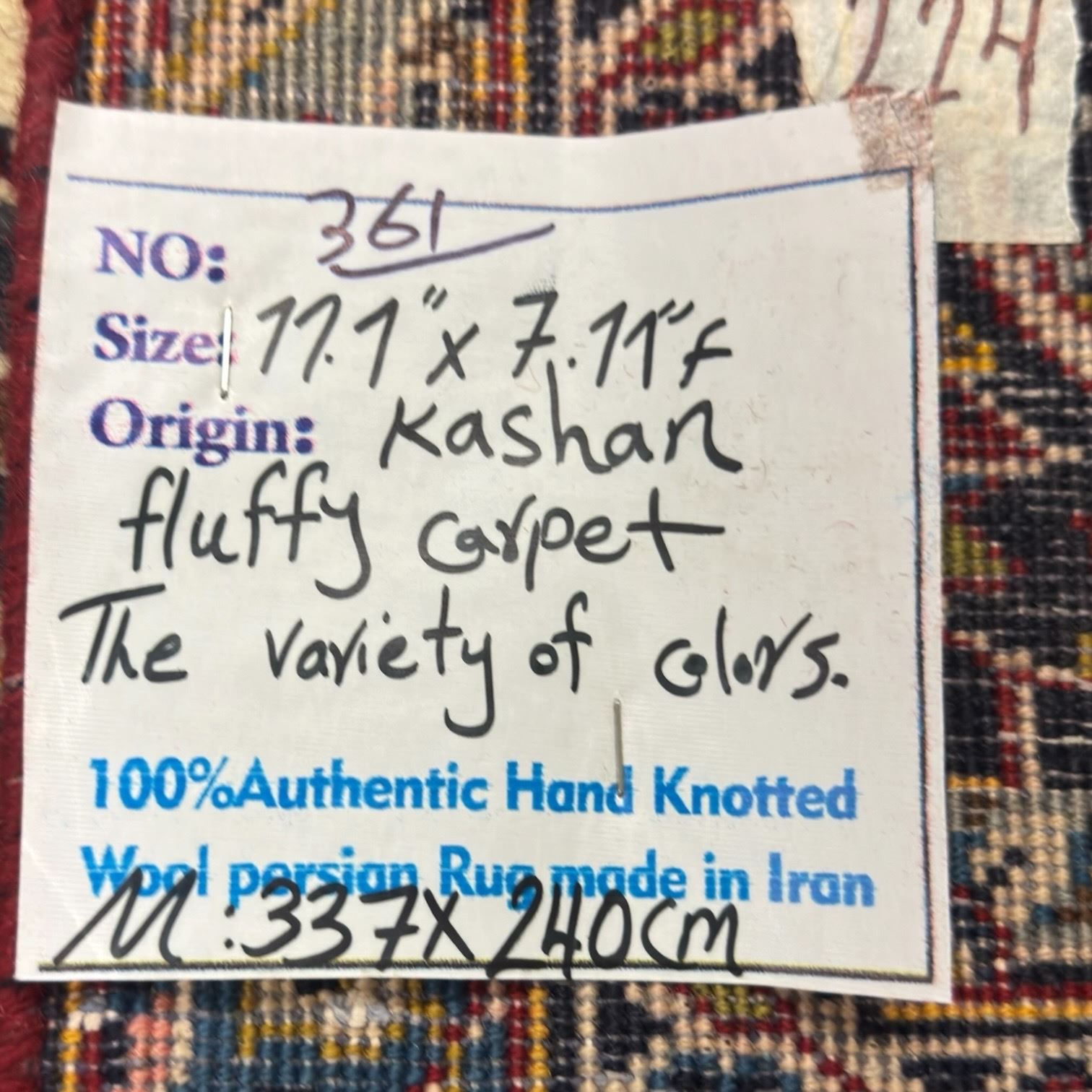 Lot 300A 100% Hand Knotted Made in Iran 11'1" x 7'10" Kashan Region Fluffy Carpet Multi Coloured (361)