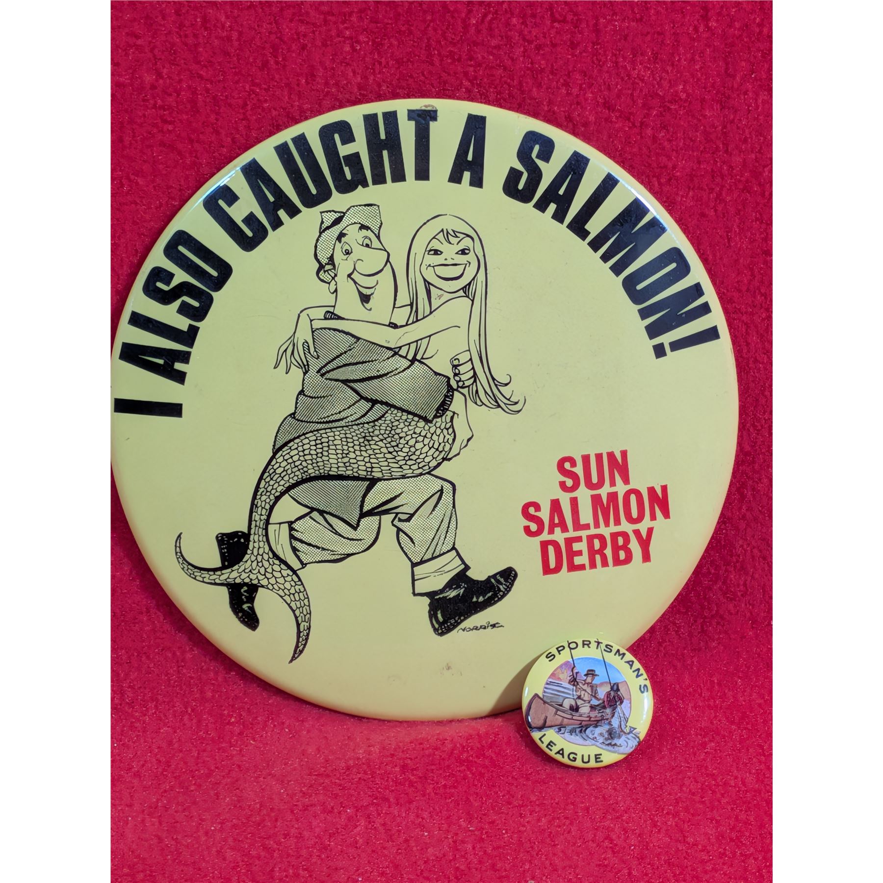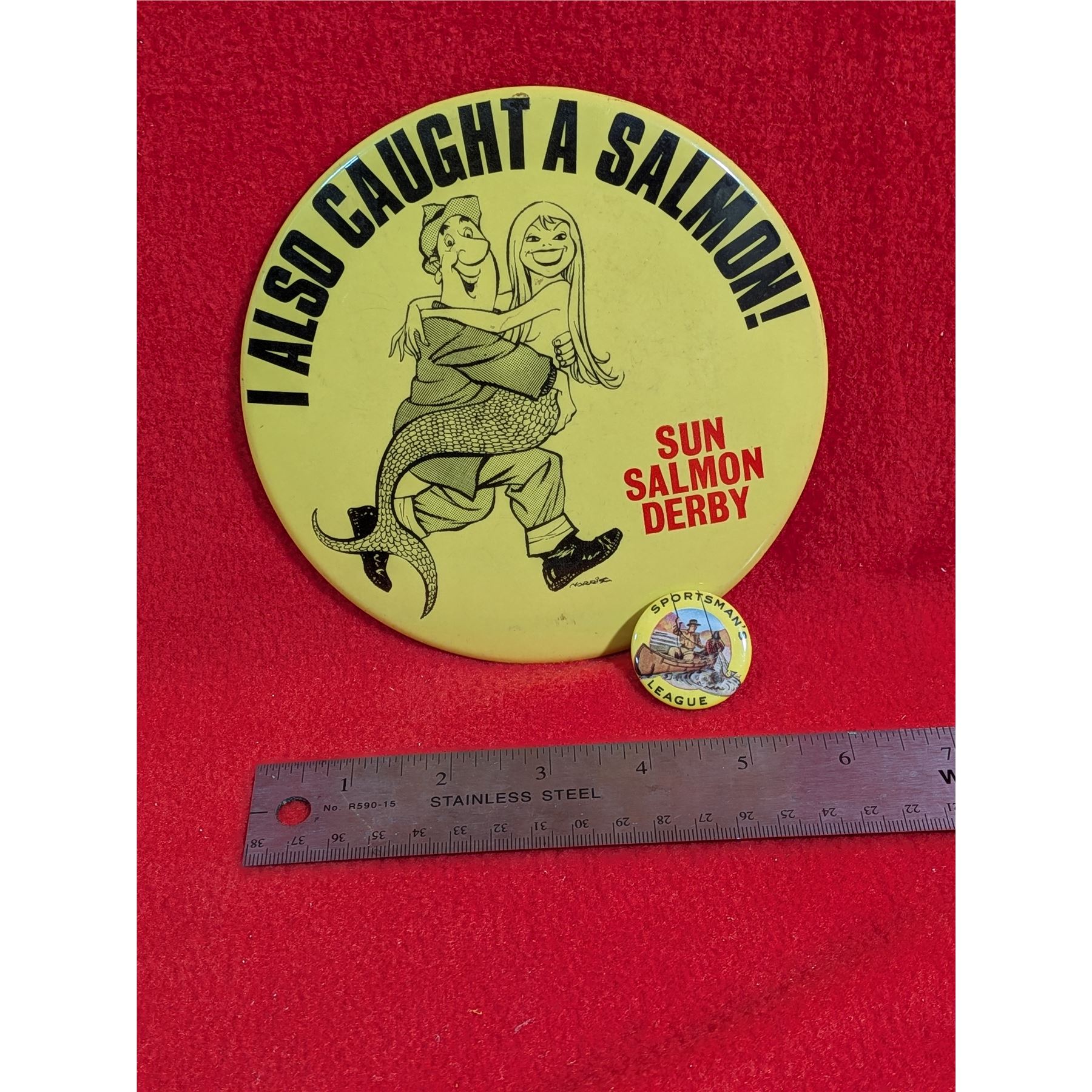 VINTAGE SUN SALMON & SPORTSMAN FISHING DERBY PINS