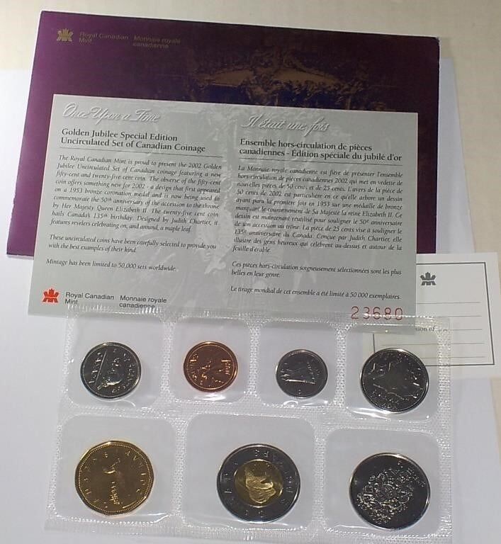Lot 4 1952-2002 Canada Golden Jubilee Uncirculated 7 coin Mint Set