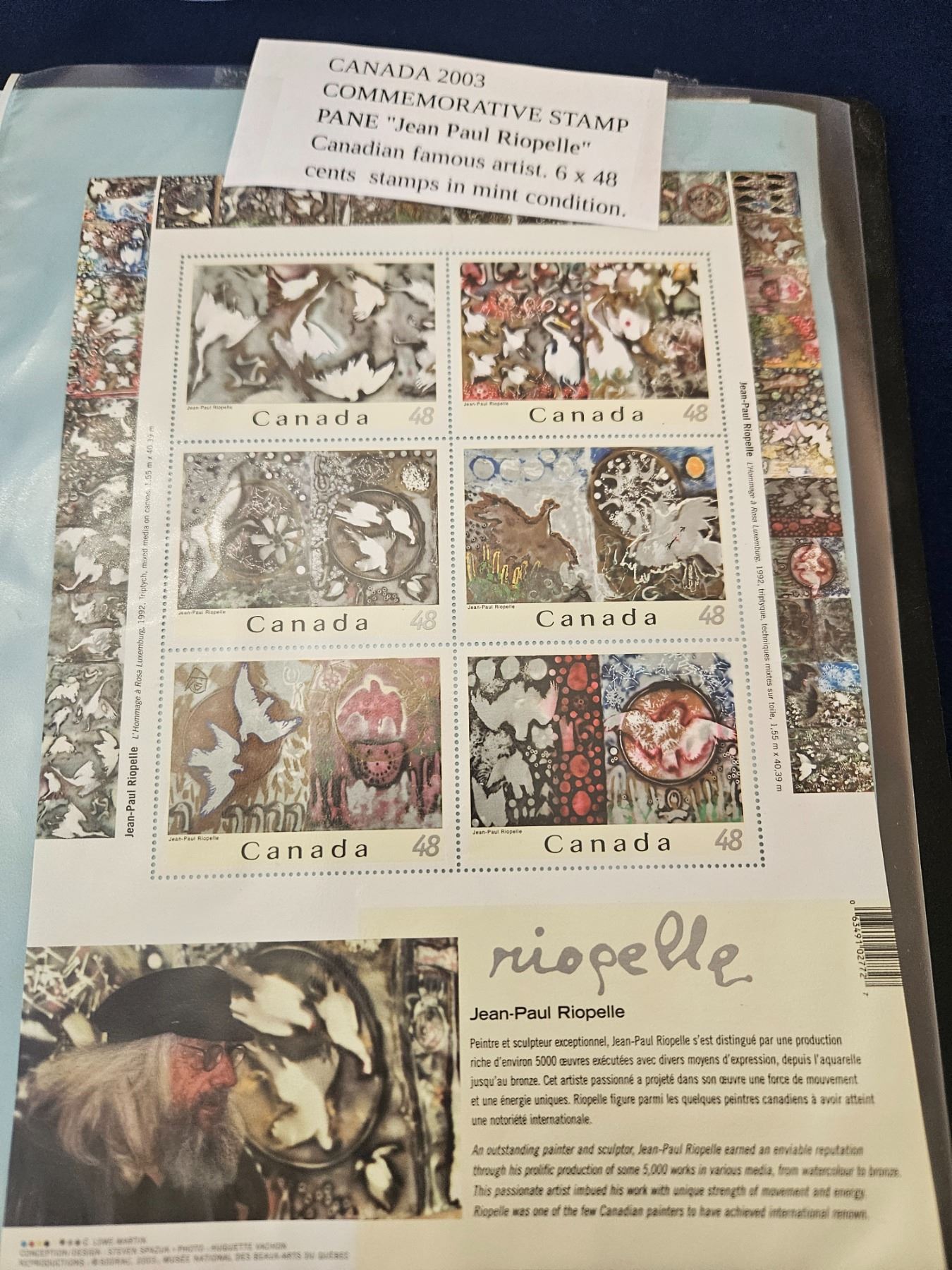 Lot 350l 2003 Canada "Jean Paul Riopelle" stamps
