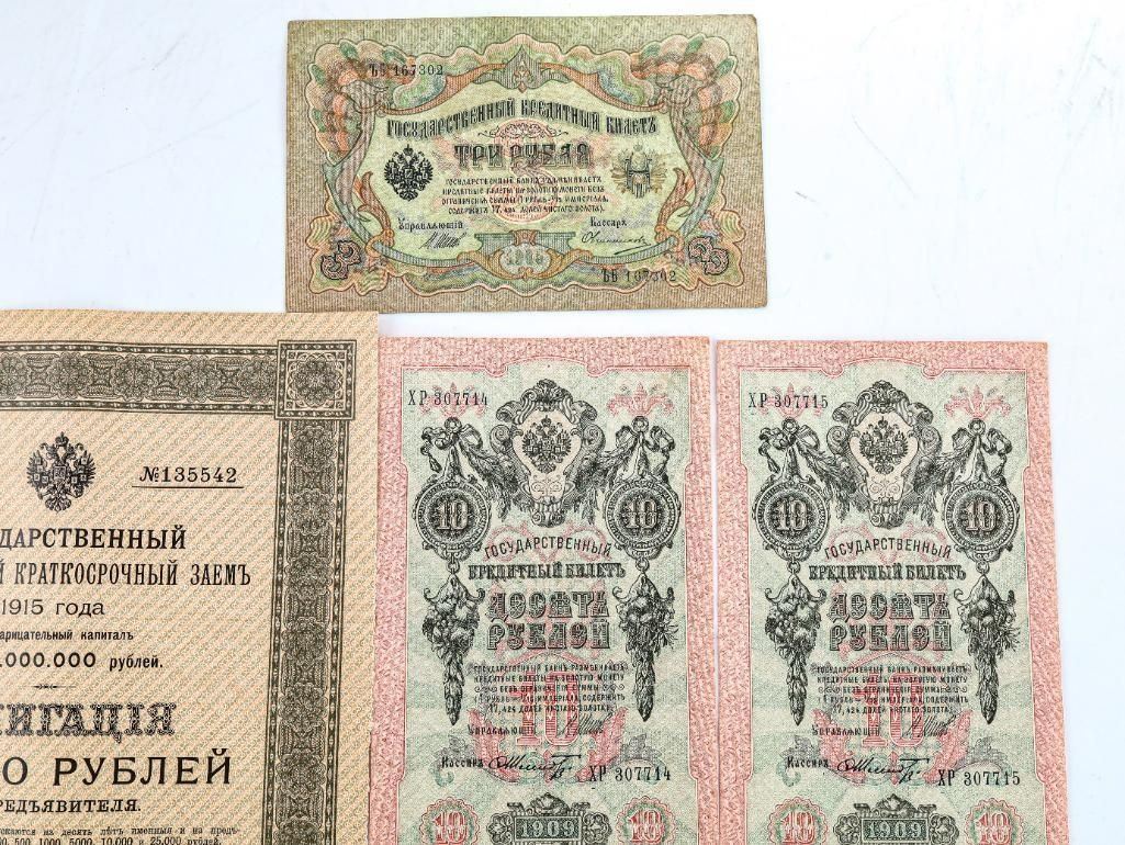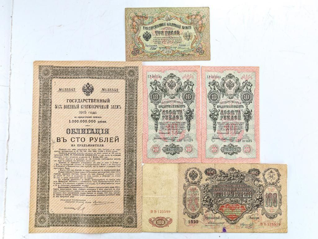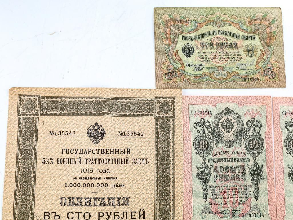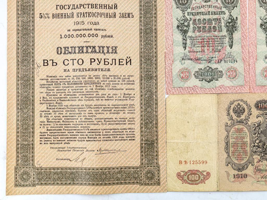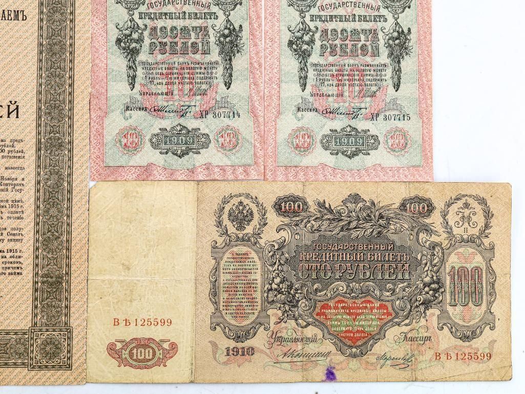 Lot 15 Group of RUSSIA Early 1900's Notes & 5.5% Russian