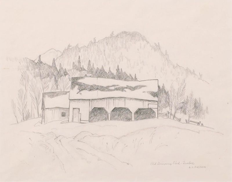 A.J. Casson 1898-1992 -Shades of Grey" Old Driving Shed Quebec - Sketch. Plate Signed 11 x 14" Ð 304755