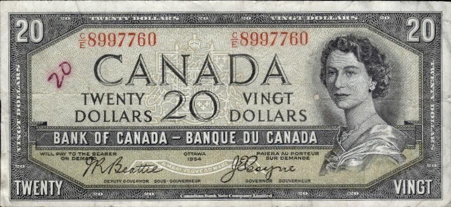 Lot 36 Bank of Canada 1954 Twenty Dollars Devil's Face Po
