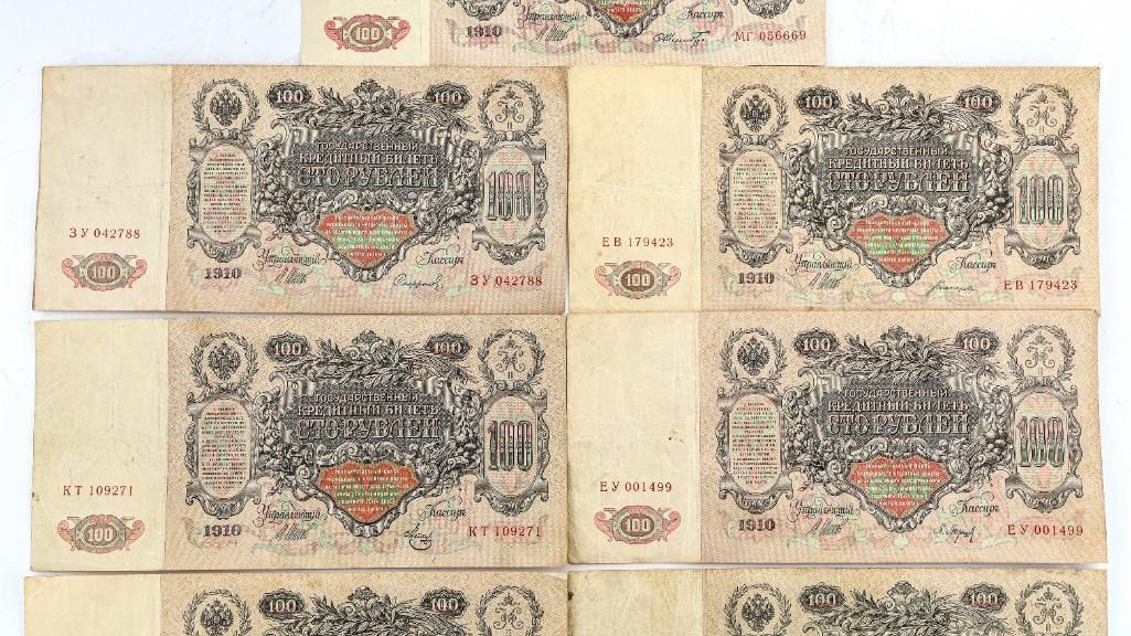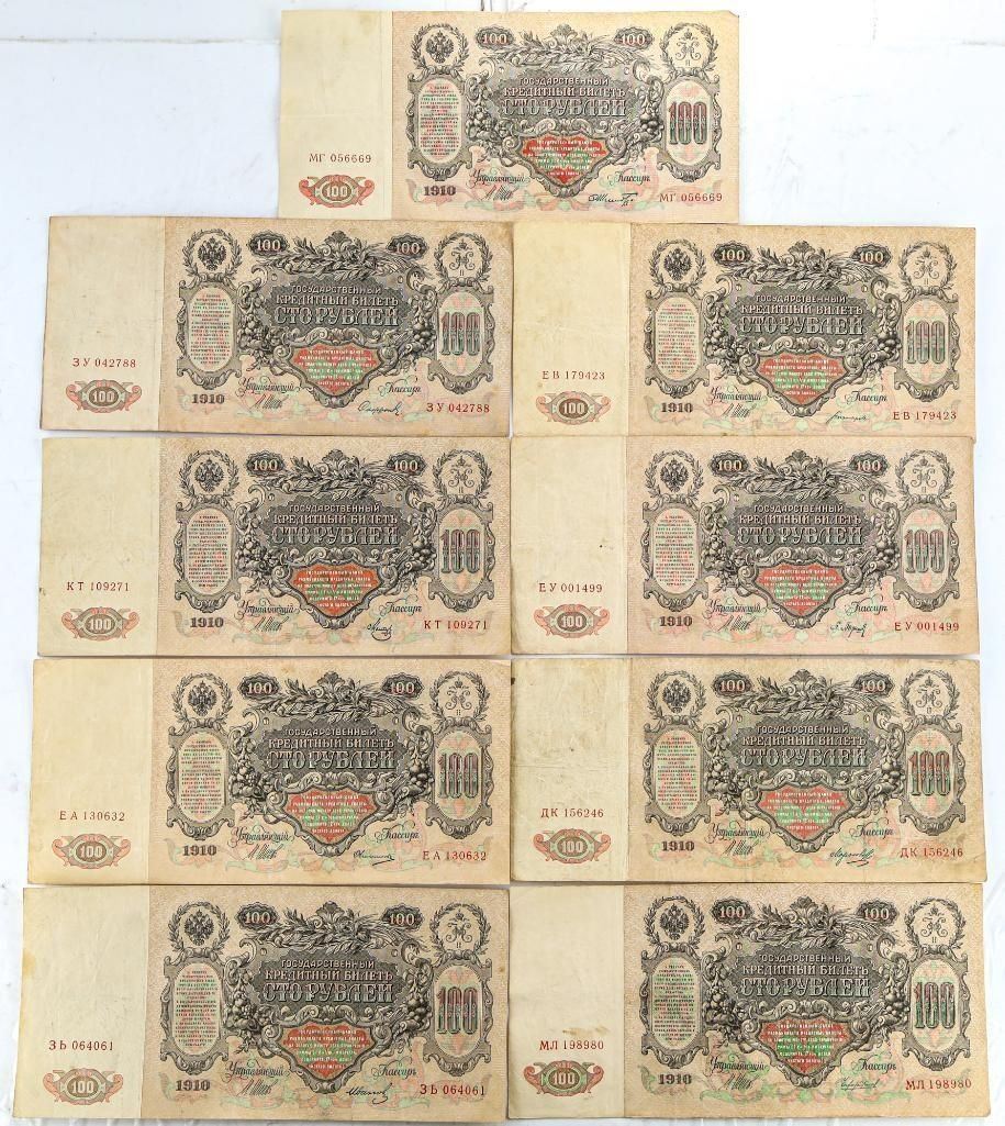 RUSSIA 1910 100 Rubles VF-EF (Pick 13b) 1912 -1917 - Group of 9 SHIPOV Varieties Ð A7943