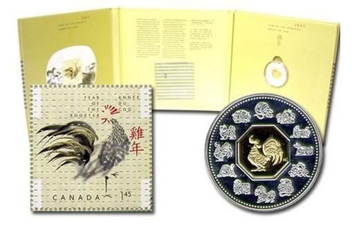 2005 Year of The Rooster Sterling Silver Coin w/Gold Plated Cameo,Stamp, Album -Issue 105.88 Ð A7980