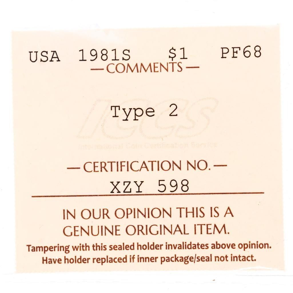 Lot 72 USA 1981S One Dollar PF68 ICCS