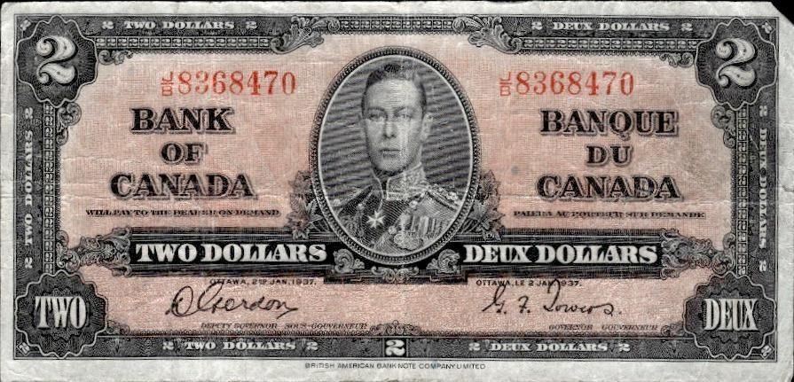 Bank of Canada 1937 Two Dollars Ð A7912