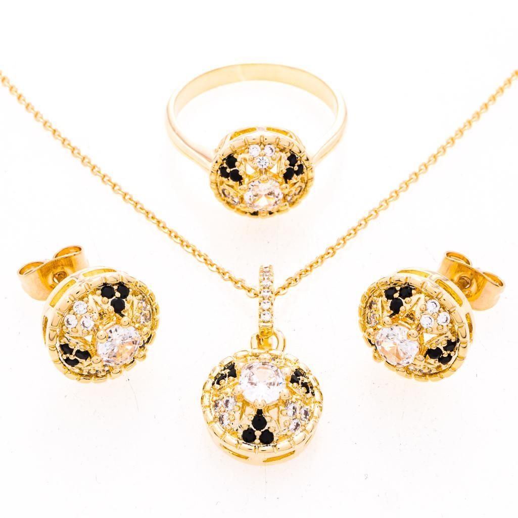 18kt Gold Overlay Jewellery Set - Earrings, Pendant, Chain & Ring, Size 8 -CZ & Gemstone Ð 5002538