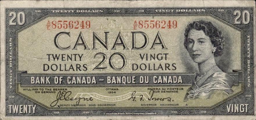 Bank of Canada 1954 Twenty Dollars Devil's Face Portrait Ð A7933