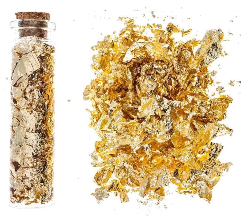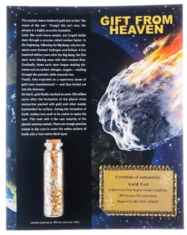 Gift From Heaven - Assayers Glass Jar of .999 Fine Gold Leaf Flakes 0n Display Giclee Card. Ð 9012438