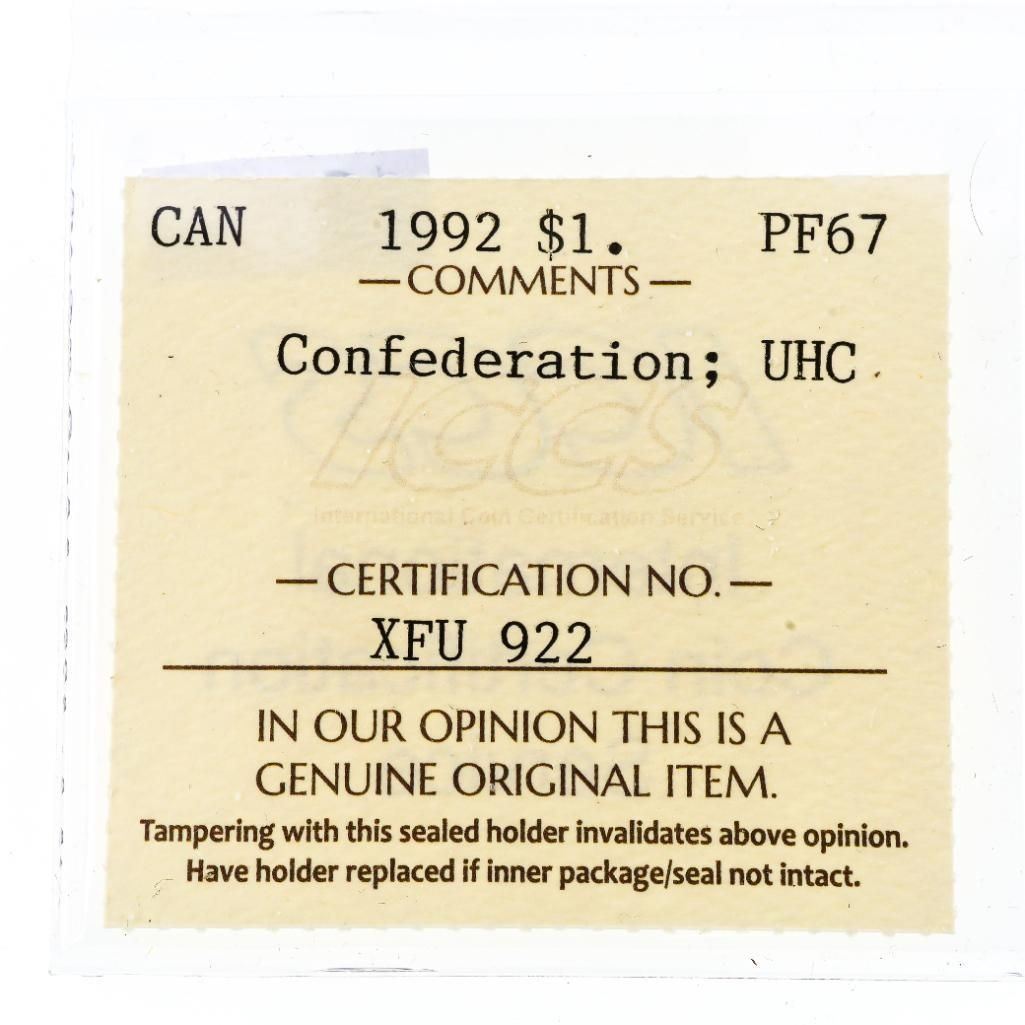 Lot 127 Canada 1992 $1 Confederation;UHC PF67 ICCS