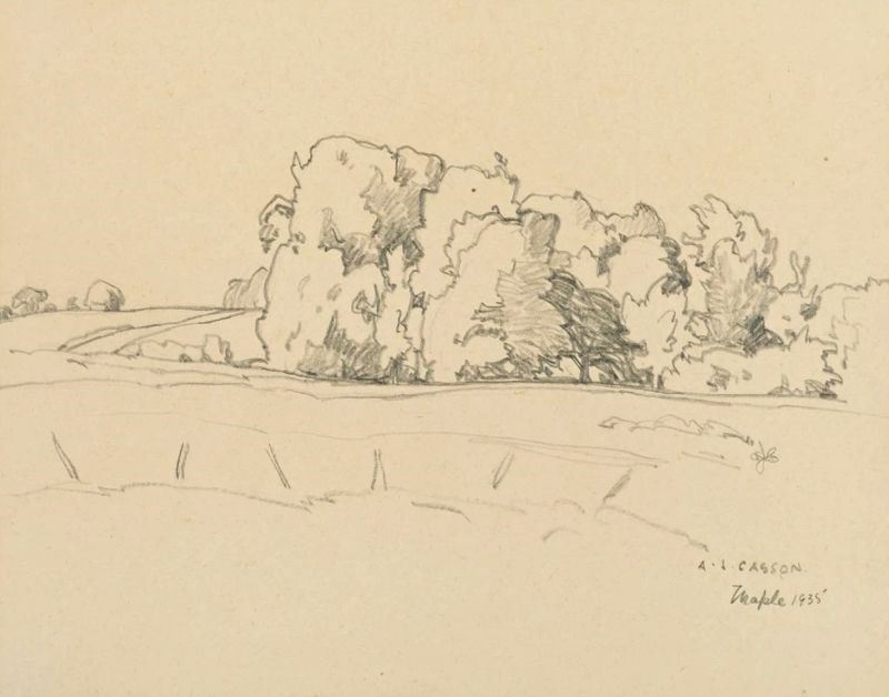 A.J. Casson -1898-1992 -Group of Seven Member -Shades of Grey - Graphite Art - "Maple" Plate Signature Ð 305147