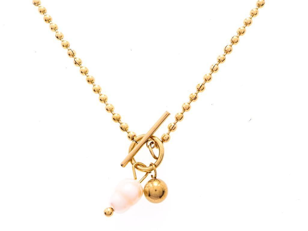 18kt GP Popcorn Style Necklace w/ Teardrop FW Pearl Ð 5004908