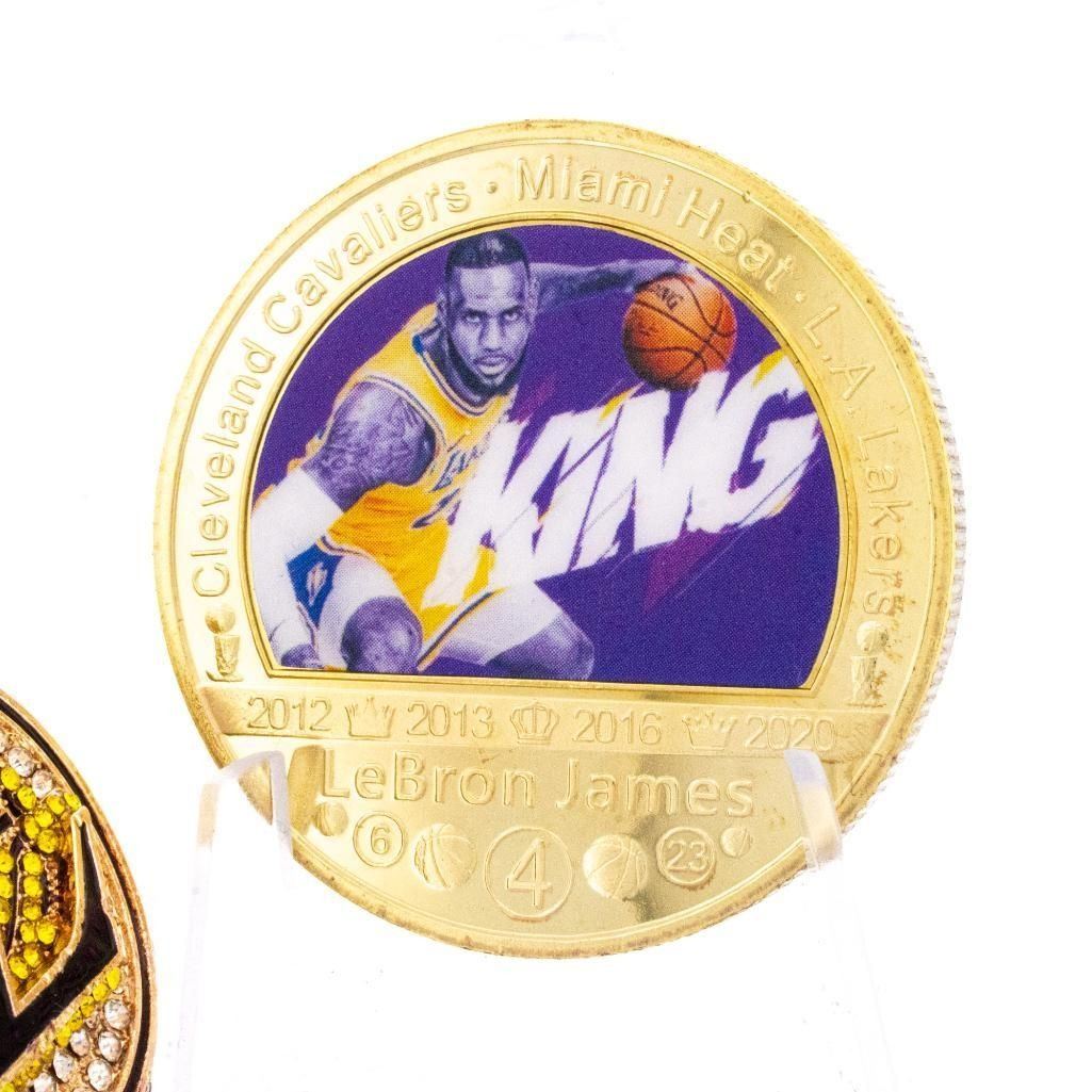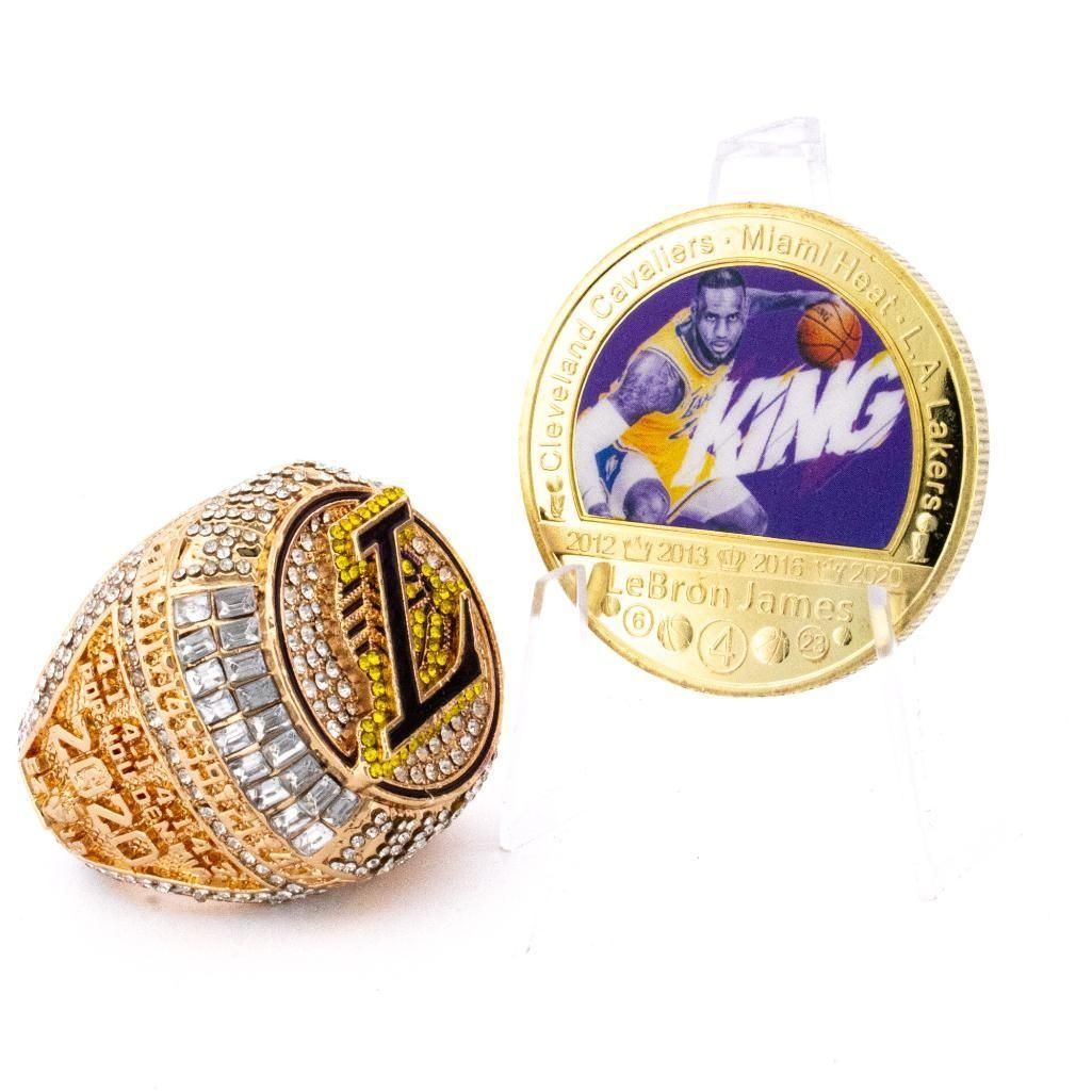 "LeBron James" Lakers 2020 World Champions Player Replica Ring + 24kt Gold Overlay Medallion Ð COIN-276