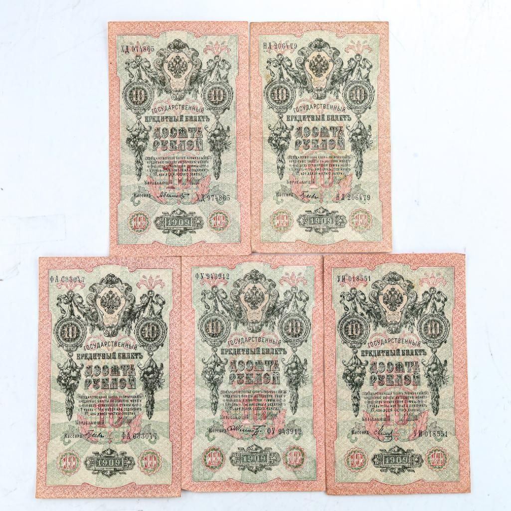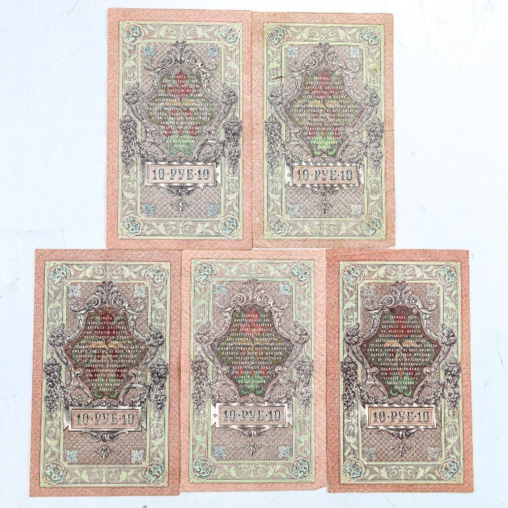 RUSSIA 1909 10 Rubles XF-AU (Pick #11c) 1912-1917 Shipov - Group of 5 Notes Ð A7941