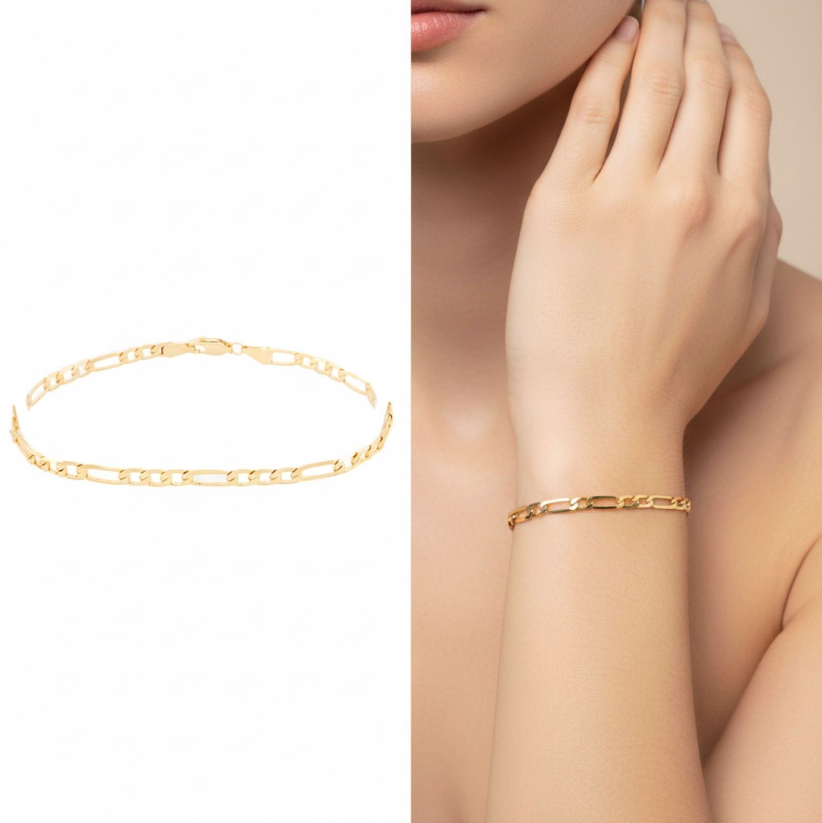 18kt Oro Laminado Figaro Link Bracelet 8" Ð A3251