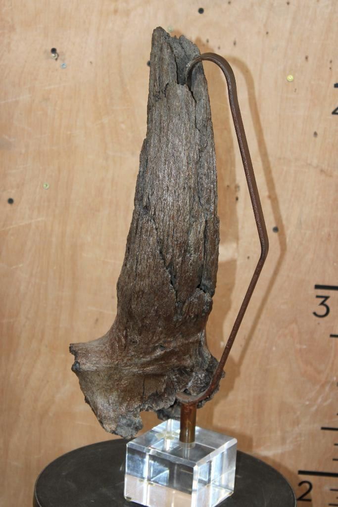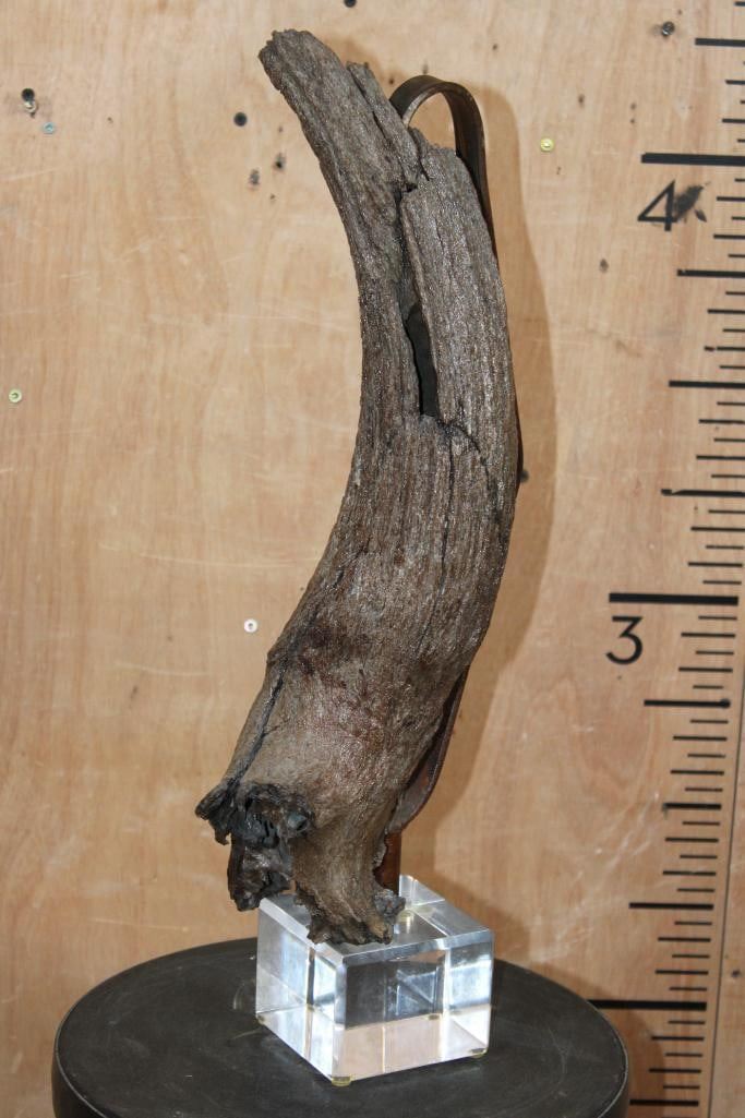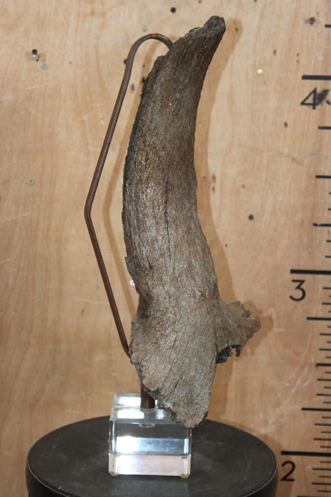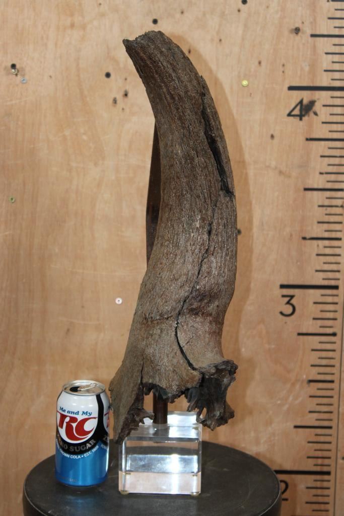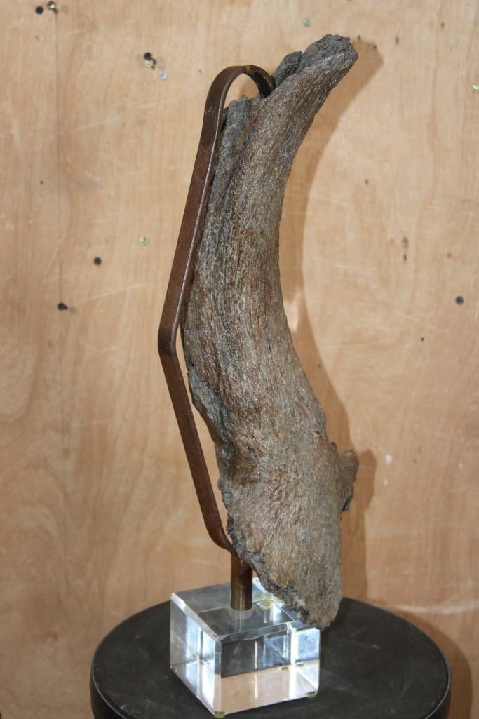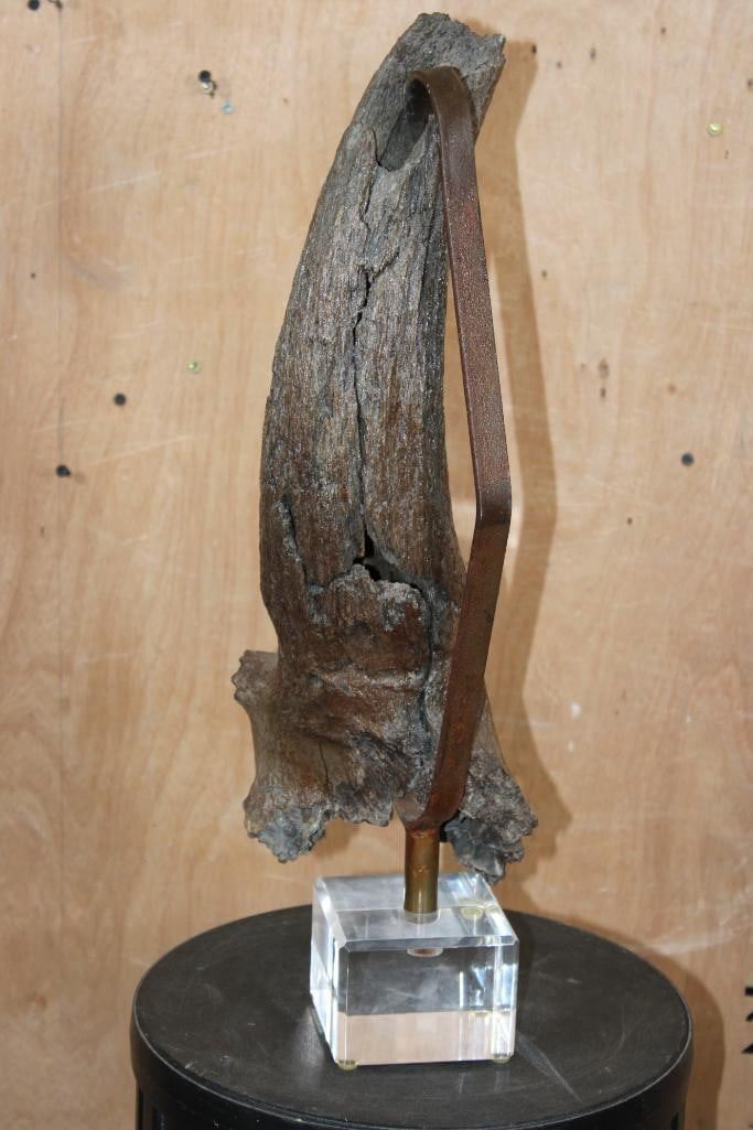 Lot 104 Fossilized BUFFALO or BISON Horn on a Custom Built Metal and Plexiglass Stand