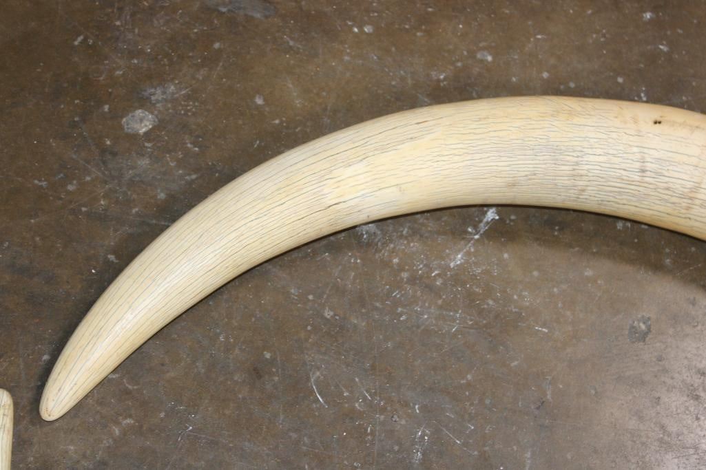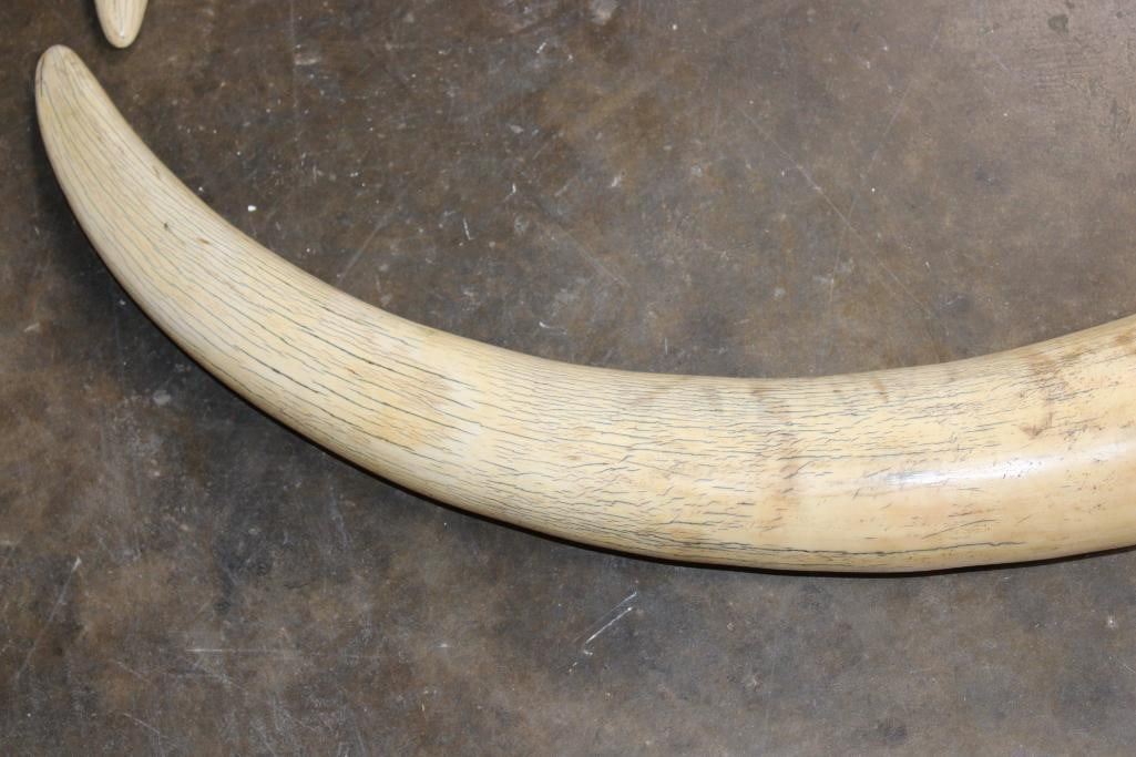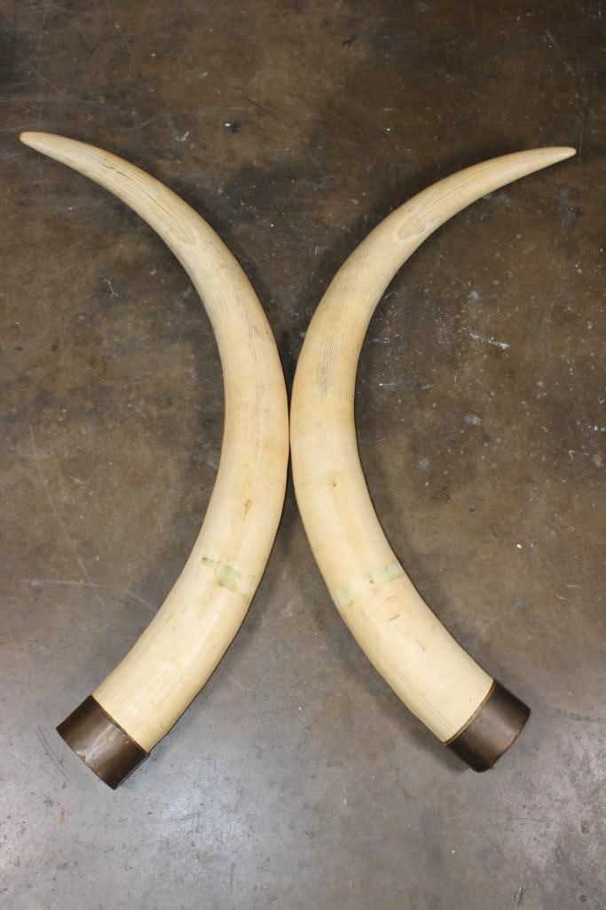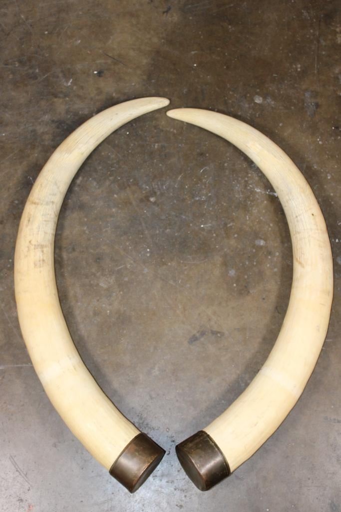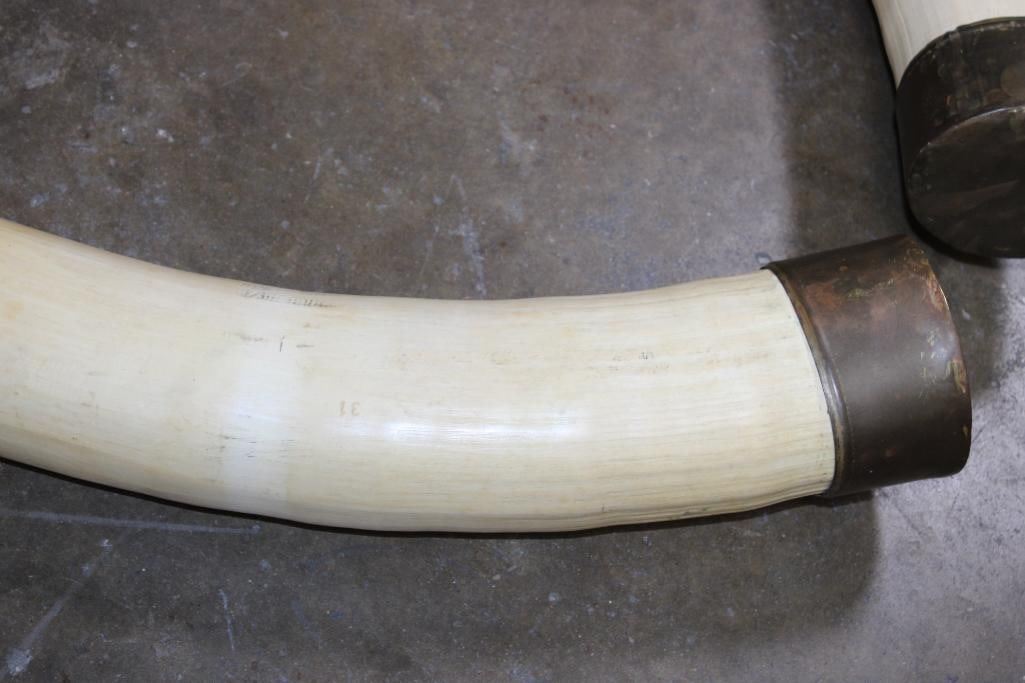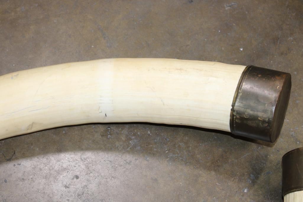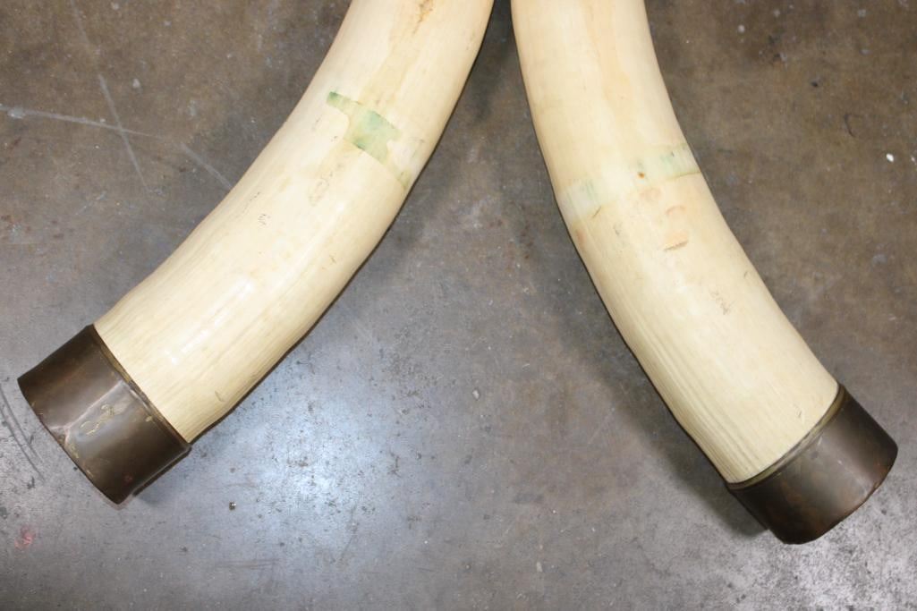 Lot 150 *TEXAS RESIDENTS ONLY* Big Set of (2) ELEPHANT IVORY TUSKS with Brass Caps