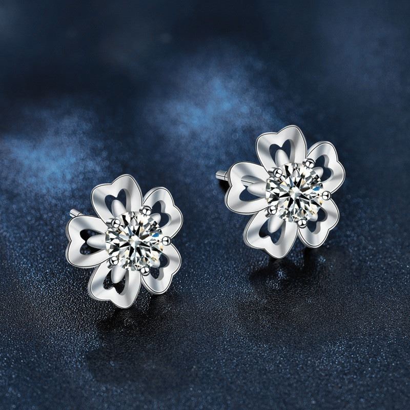 CUT 925S EARRINGS WITH VVS D COLOR GRADE MOISSANITE CENTER STONE. COMES WITH ITS GRA CERTIFICATE. XEA011