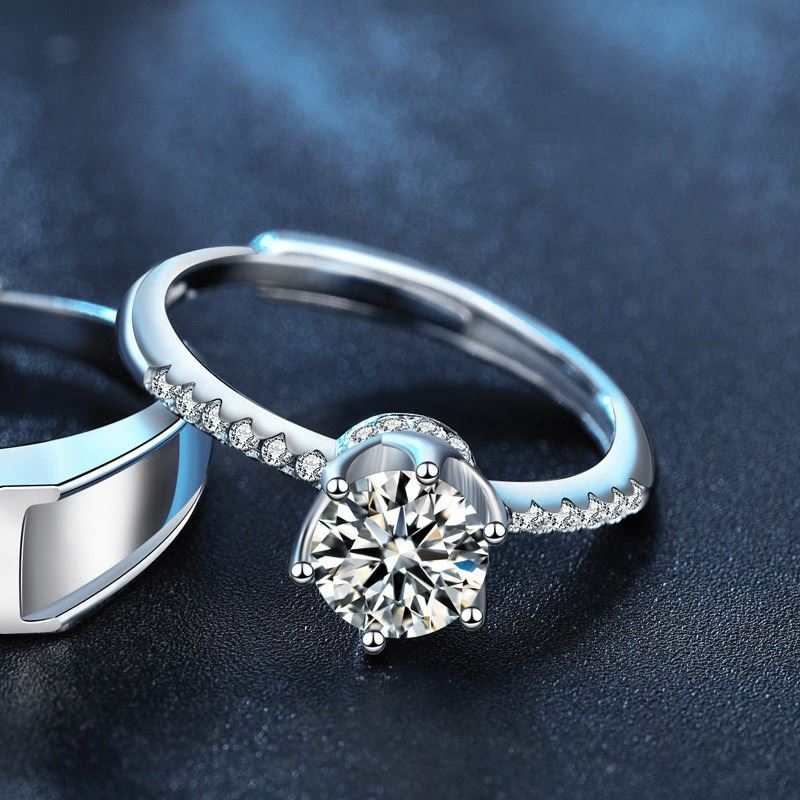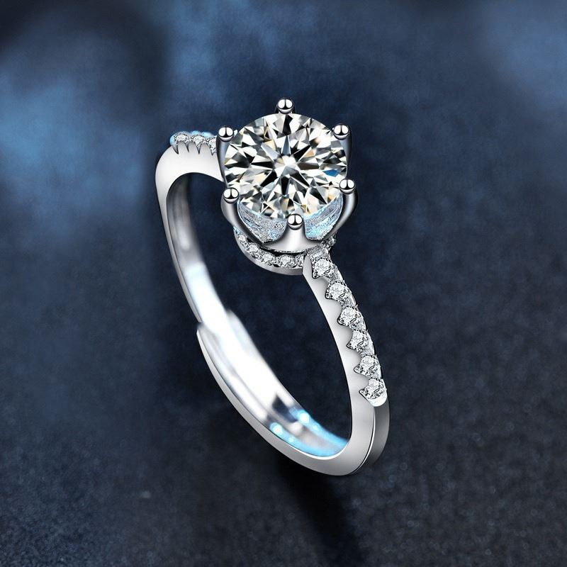925S OPEN ADJUSTIBLE SIZE LUXURY RING WITH VVS D COLOR GRADE MOISSANITE STONE. COMES WITH ITS GRA CERTIFICATE. XJZ050PB