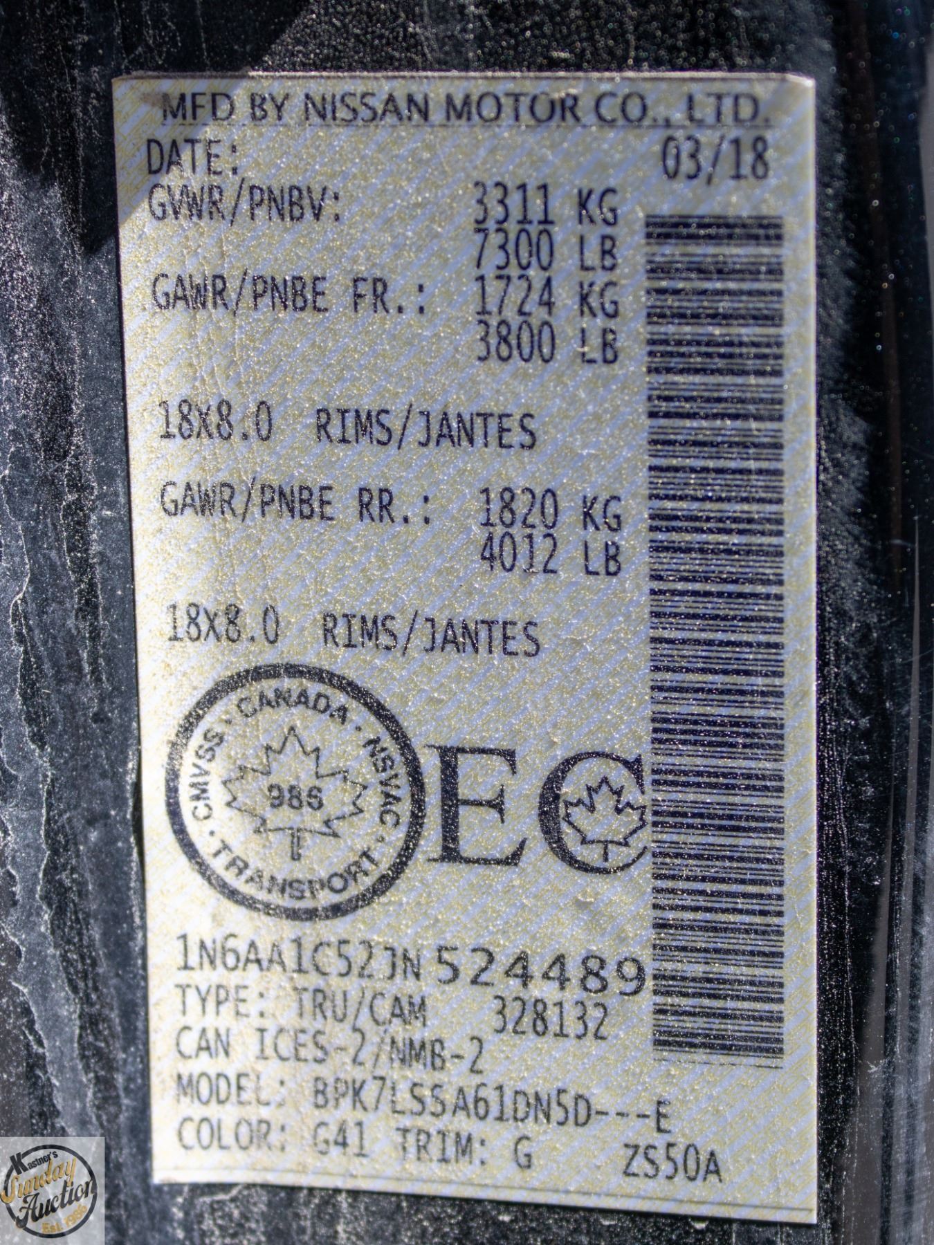 Lot 501 BAILIFF SEIZED: 2018 NISSAN TITAN **LOW KM**
