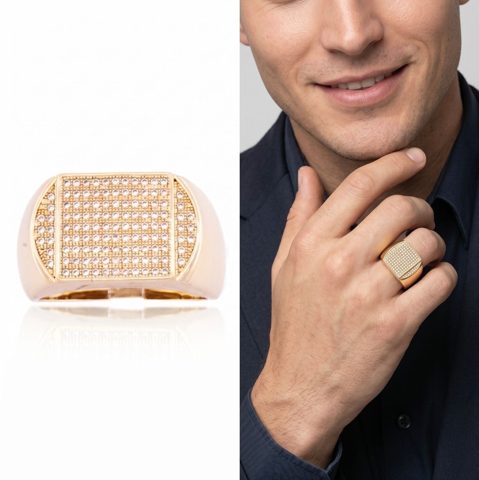 18Kt Gold Oro Laminado Gents Ring Micro Pave Set (Size 11) Ð A8871