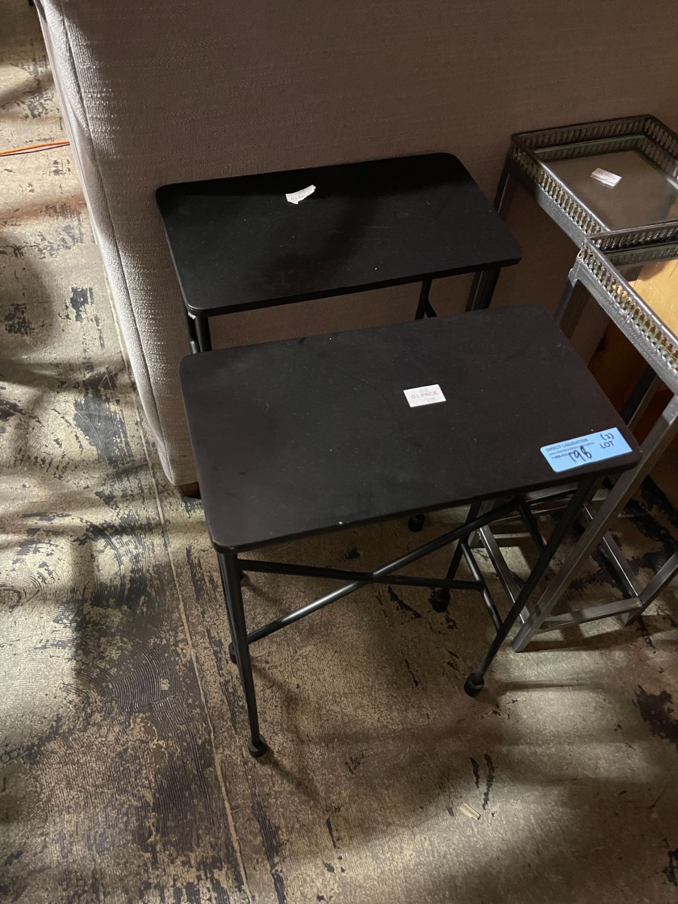 Lot 198 Pair of Black Metal Accent Tables, H24" x W14" x D8"