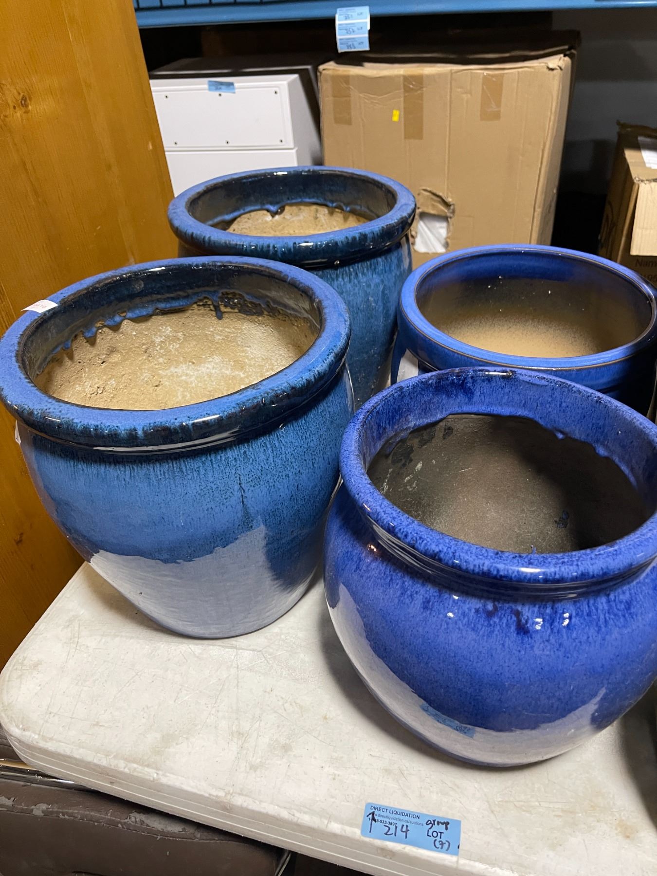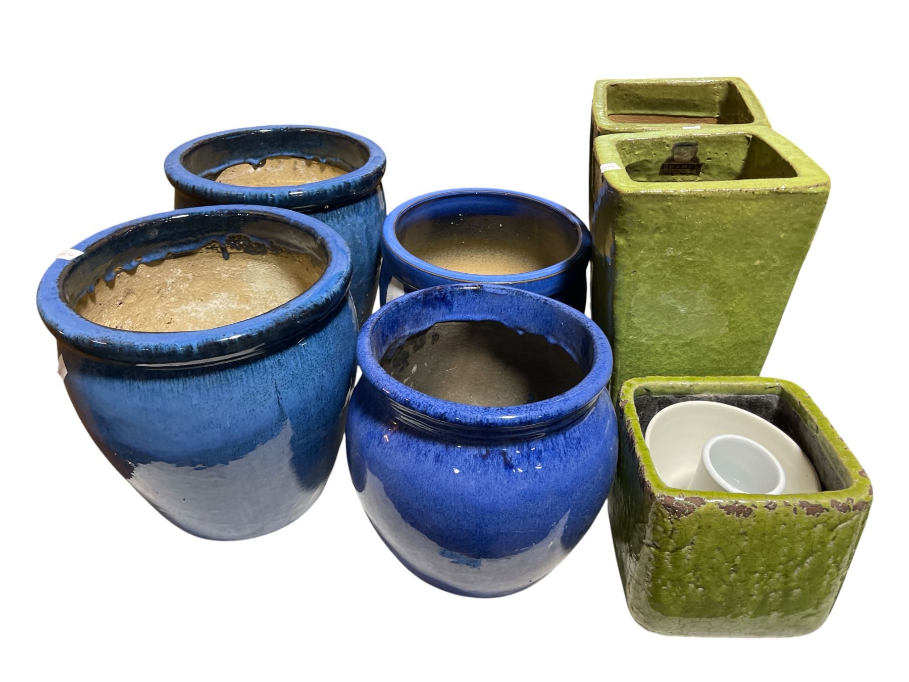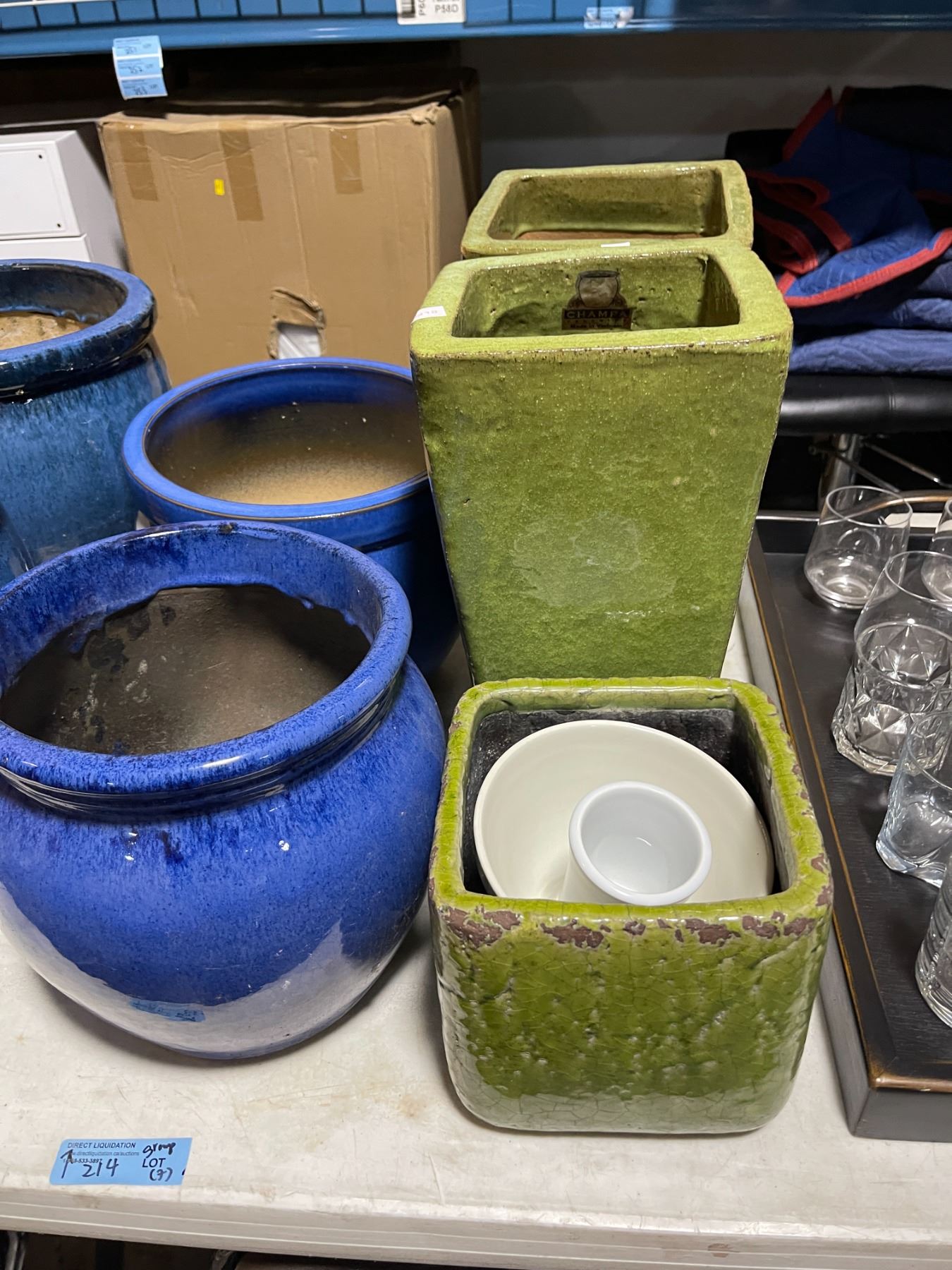 Lot 214 7-Pcs Blue and Green Ceramic Planters - Various Sizes