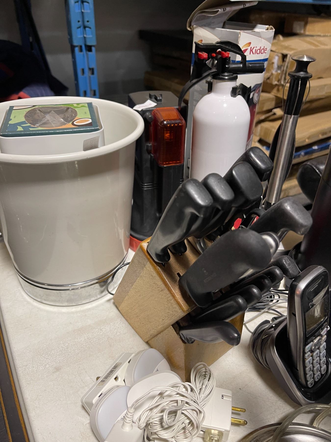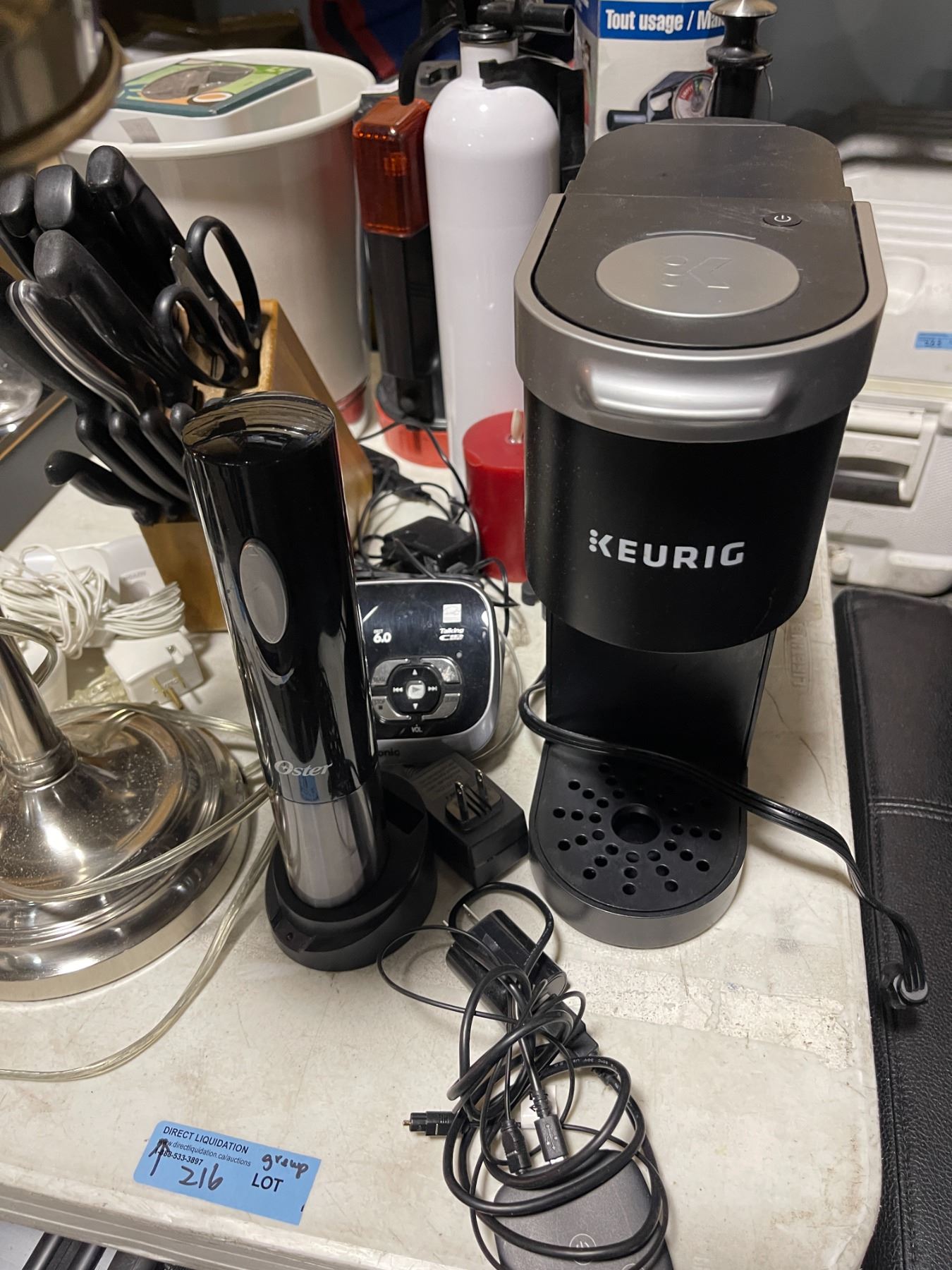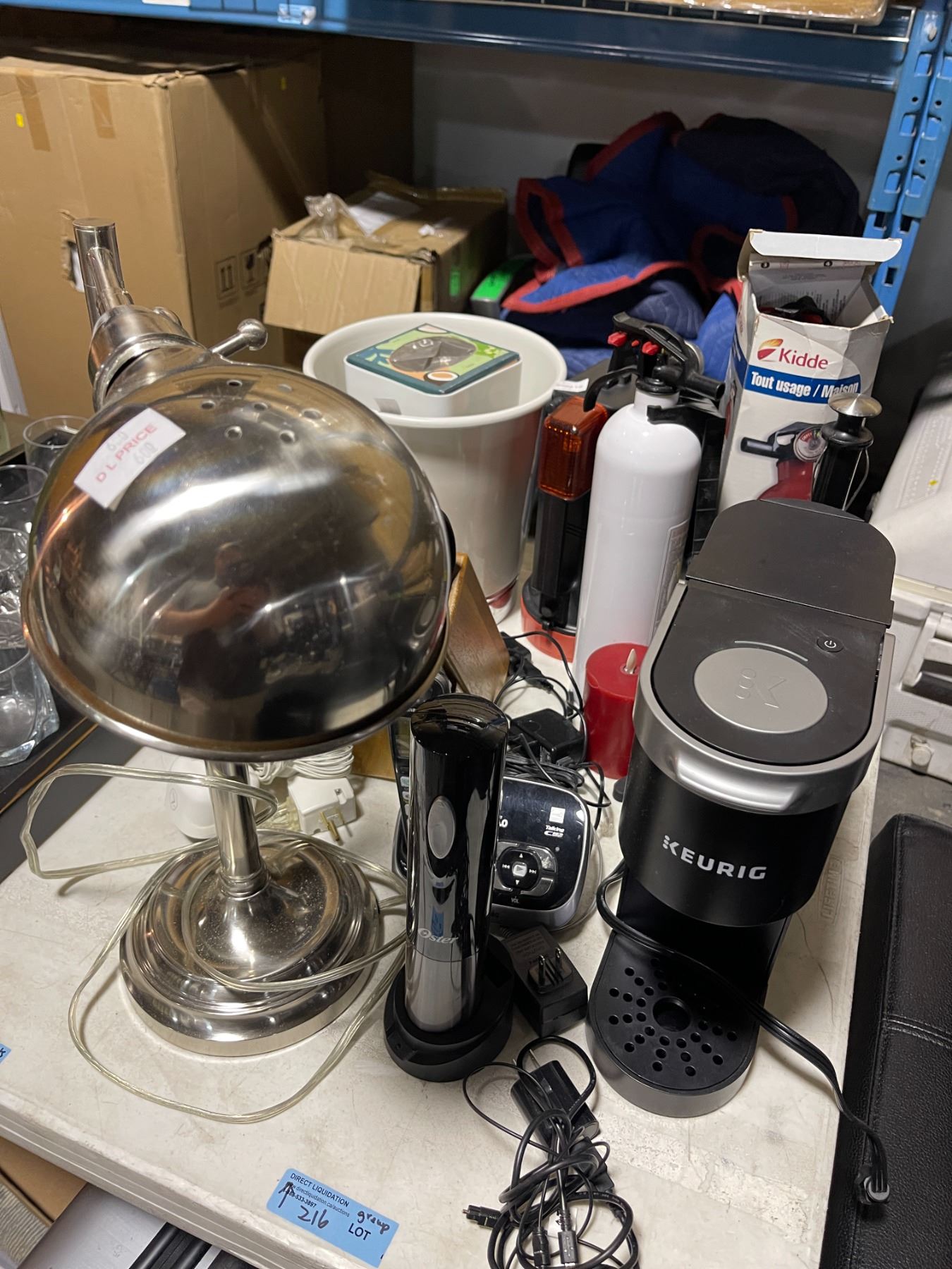 Lot 216 Group of Misc Household Items - Keurig Coffee Maker, Desk Lamp,