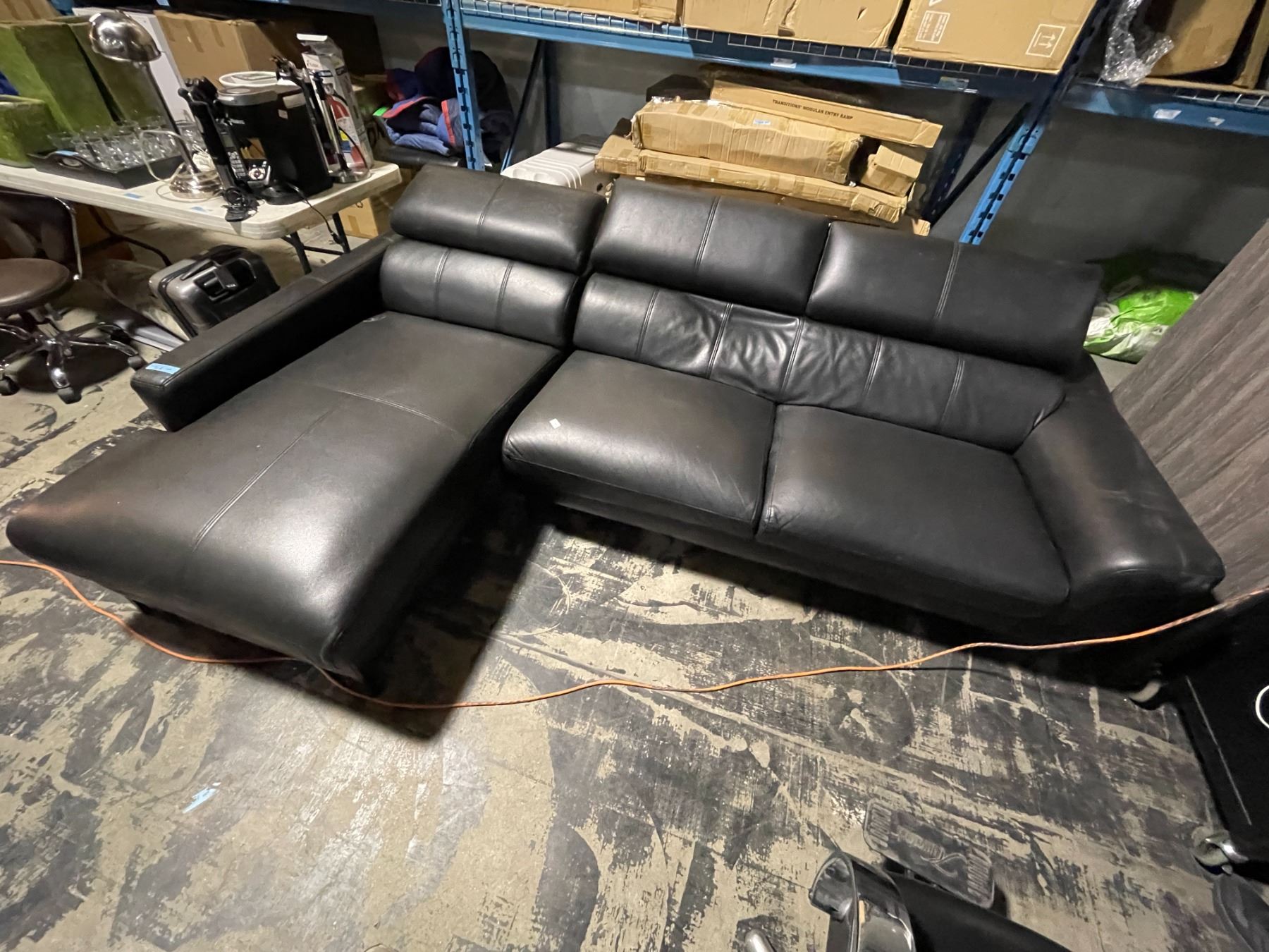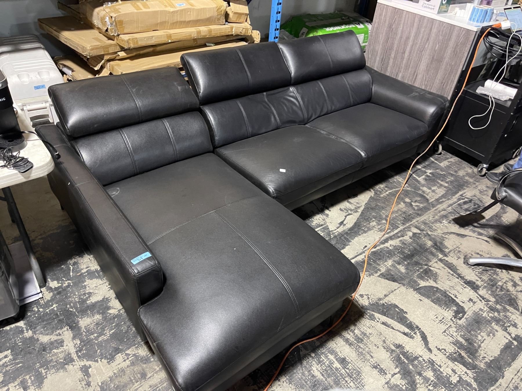 Lot 218 Black Faux Leather 3-Seater Sofa, H36" x W104" x D39"/64'