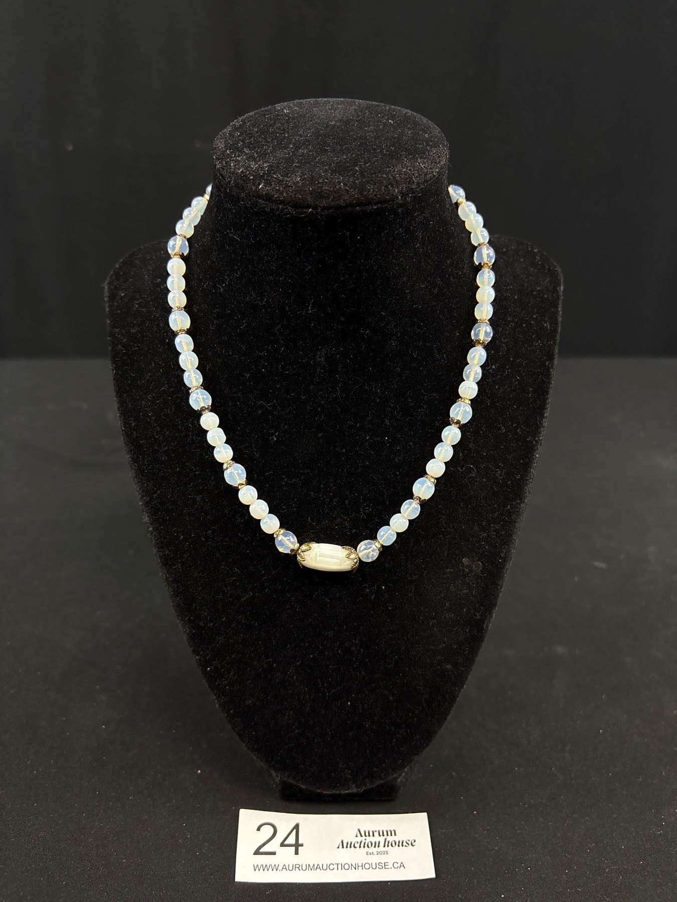Vintage Opalesque Glass Beads Necklace, Possible Czechoslovakia Origin