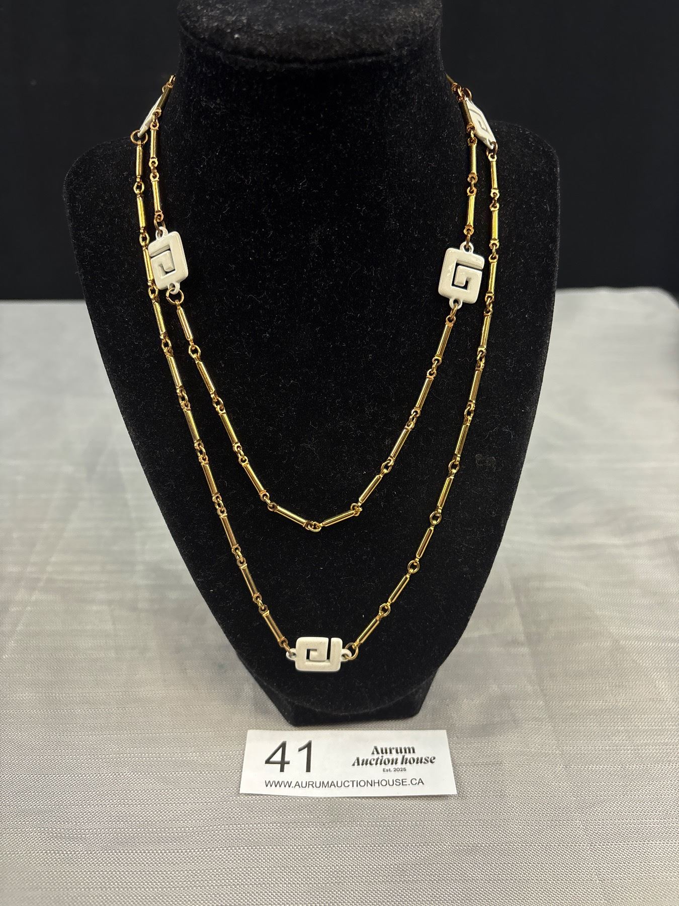 Lot 41 Vintage Gold Plated Linked w/ White Porcelain Necklace, Extra Length