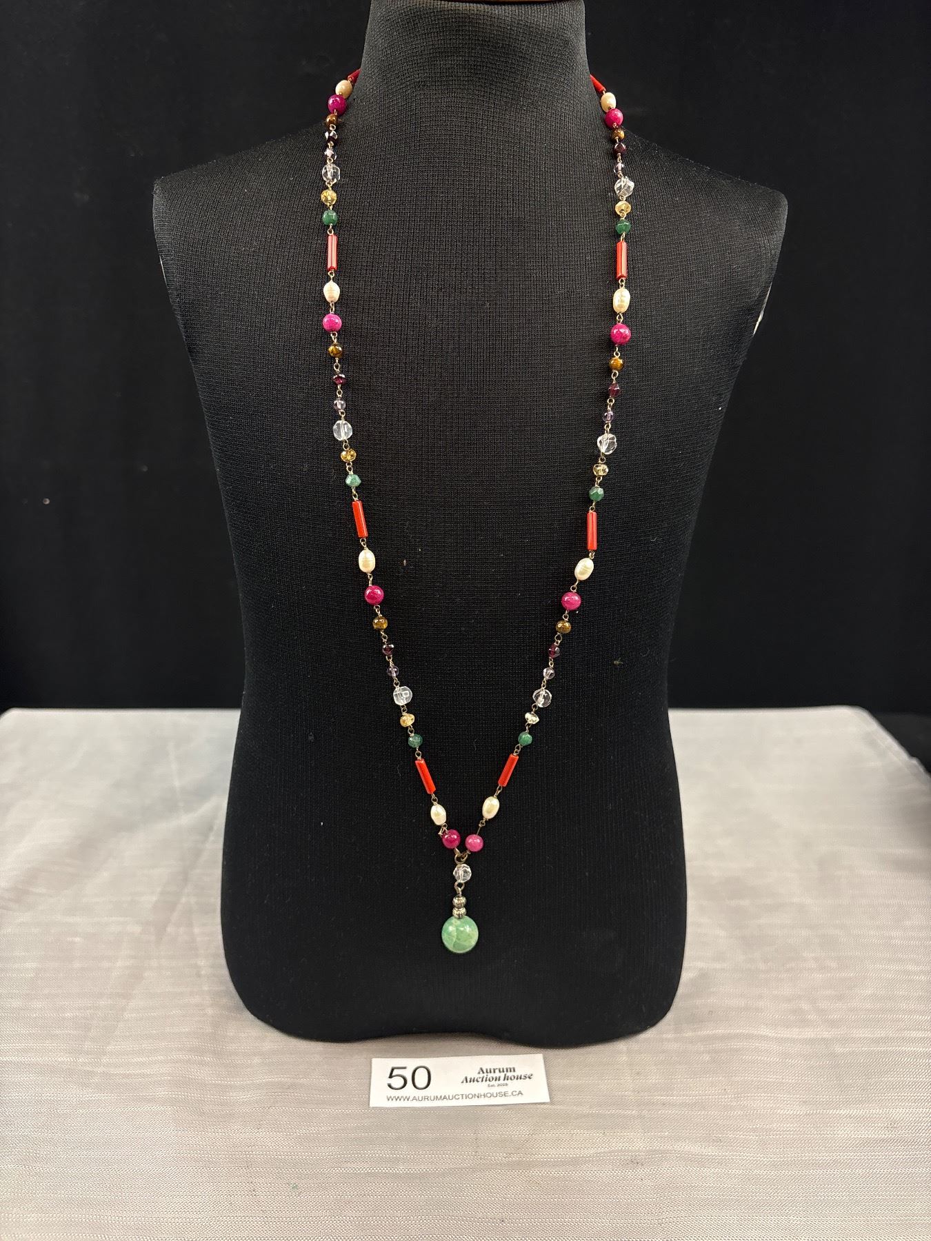 Lot 50 Lovely Necklace w/ Pearls, Gem Stone Beads, Crystal Beads w/ Green Stone Bead Pendant