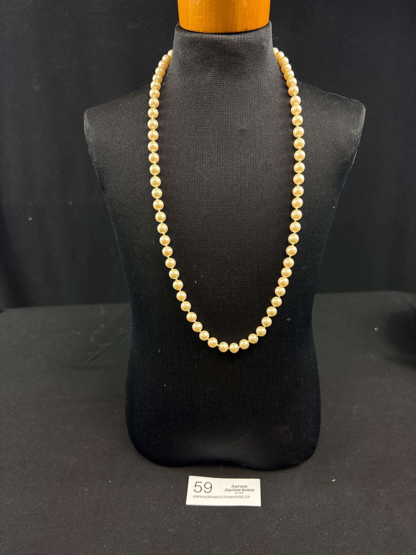 Lot 59 Vintage Hand Knotted Pearls Necklace, 24" Length