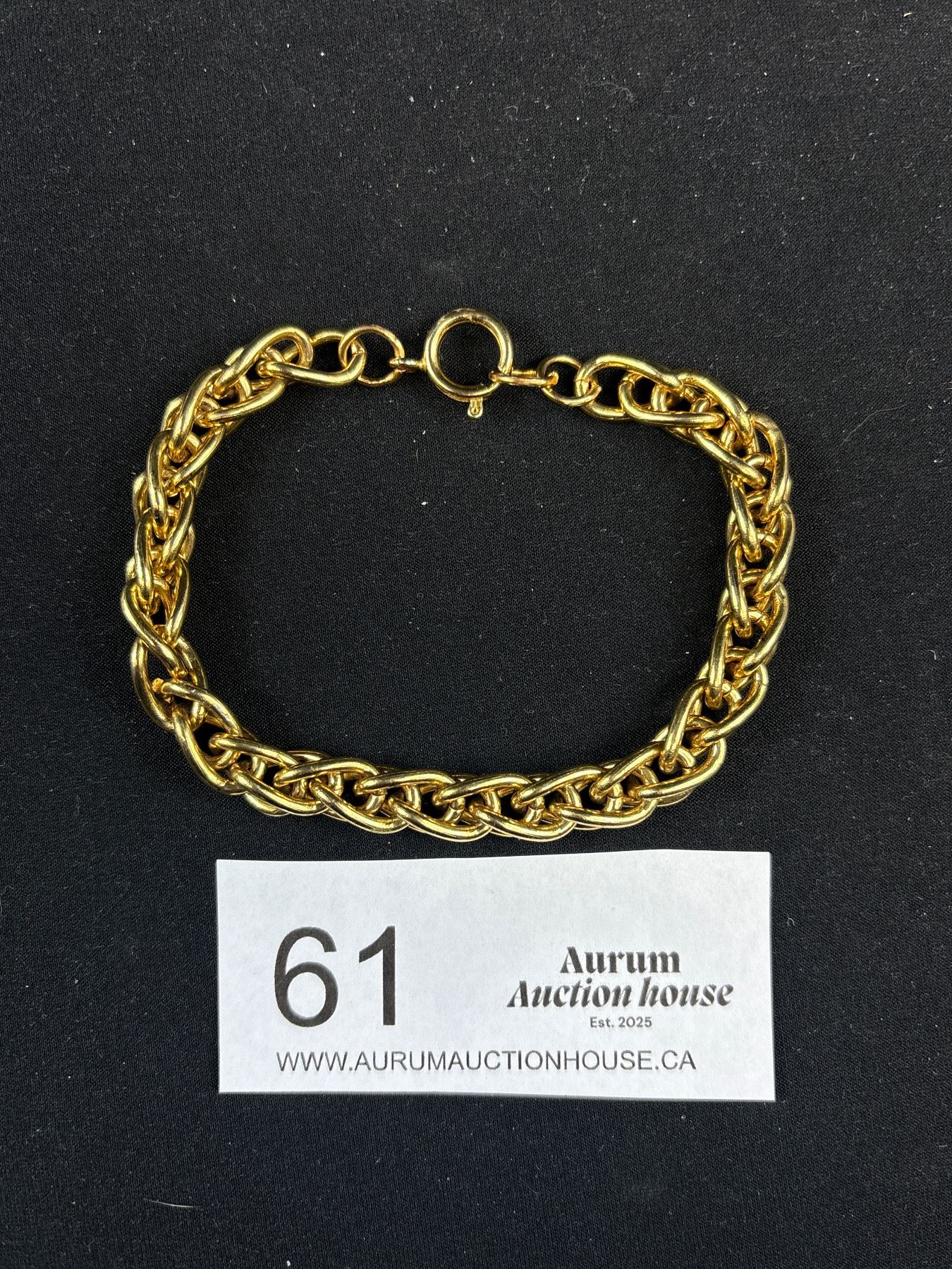 Lot 61 Gold Plated Twisted Links Bracelet, Solid + Heavy, 18" Length