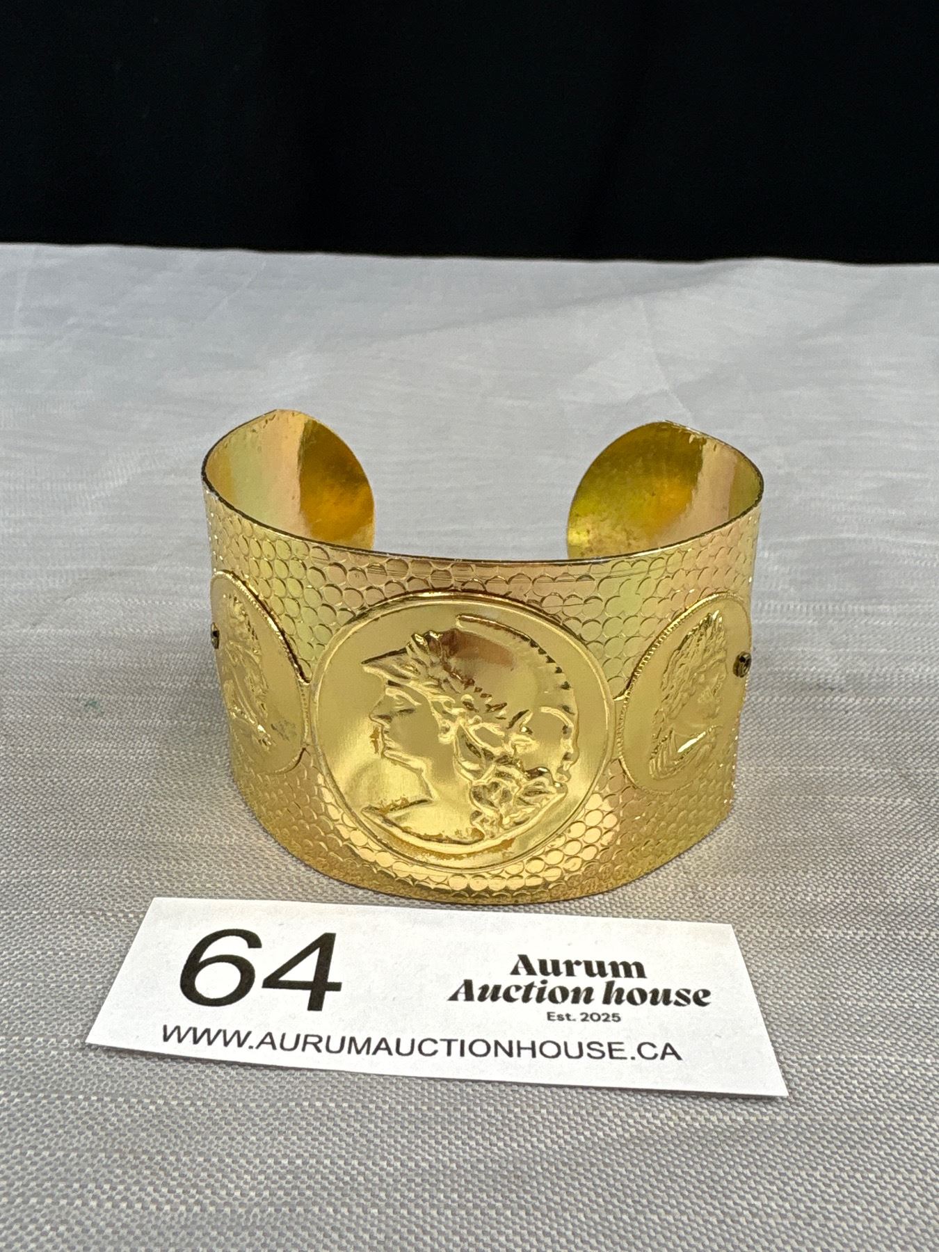 Lot 64 Vintage Gold Plated Roman Open Cuff Bangle