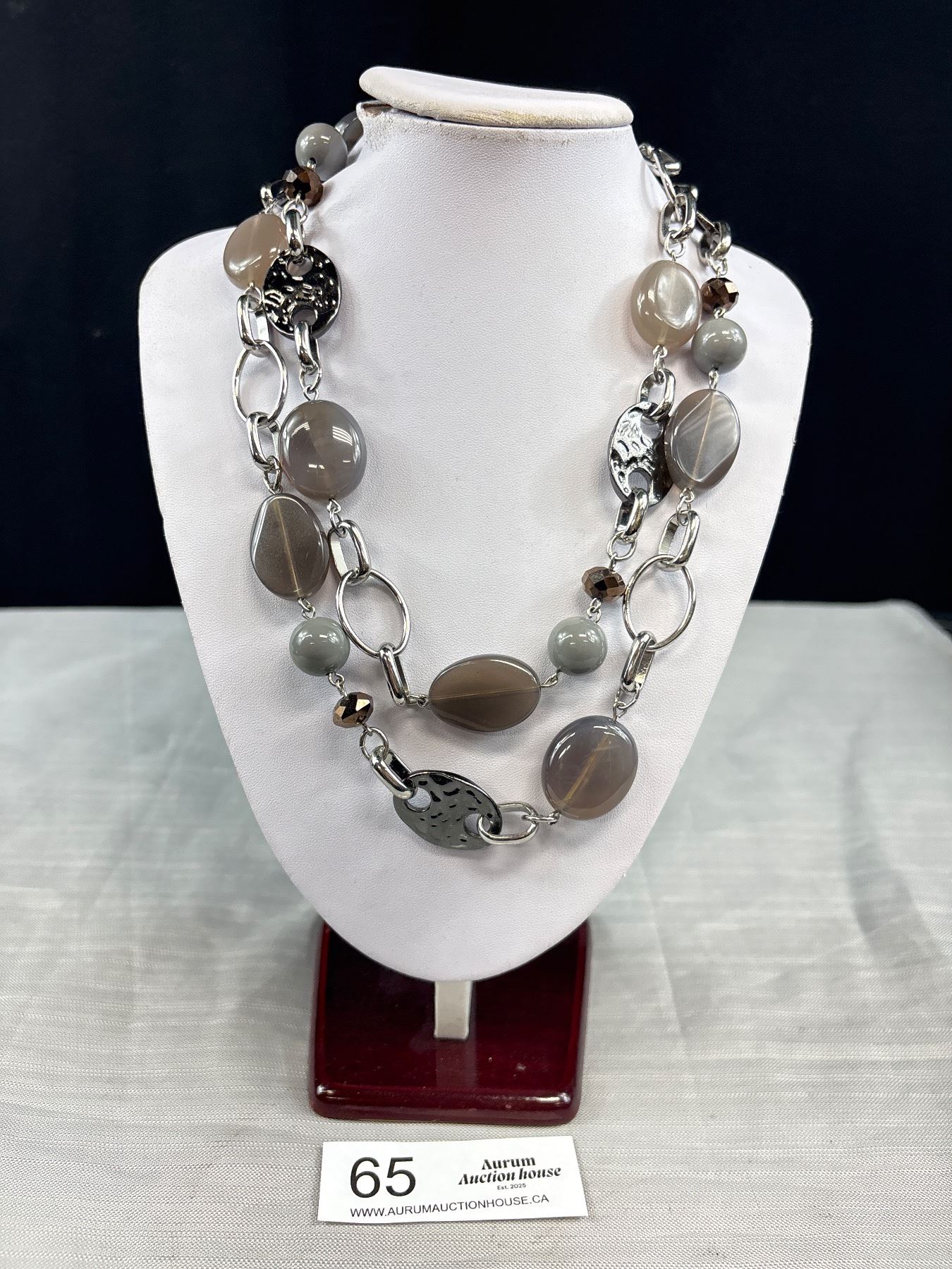 Lot 65 Solid + Heavy Silver Metal w/ Stones Necklace, Extra Length 43" Marked Lia Sophie