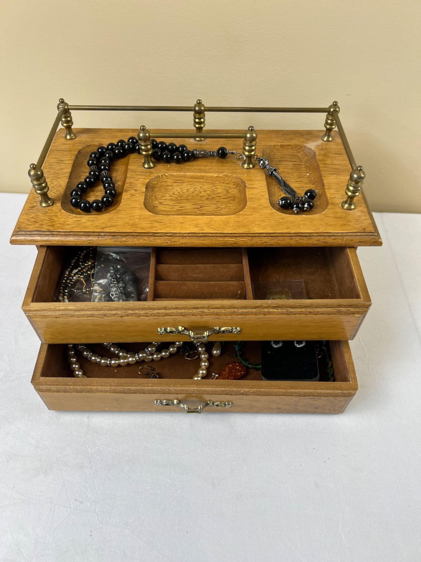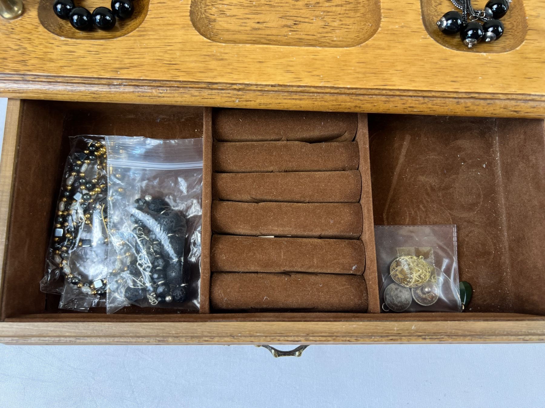 Lot 46 Wooden Jewelry Box with Content