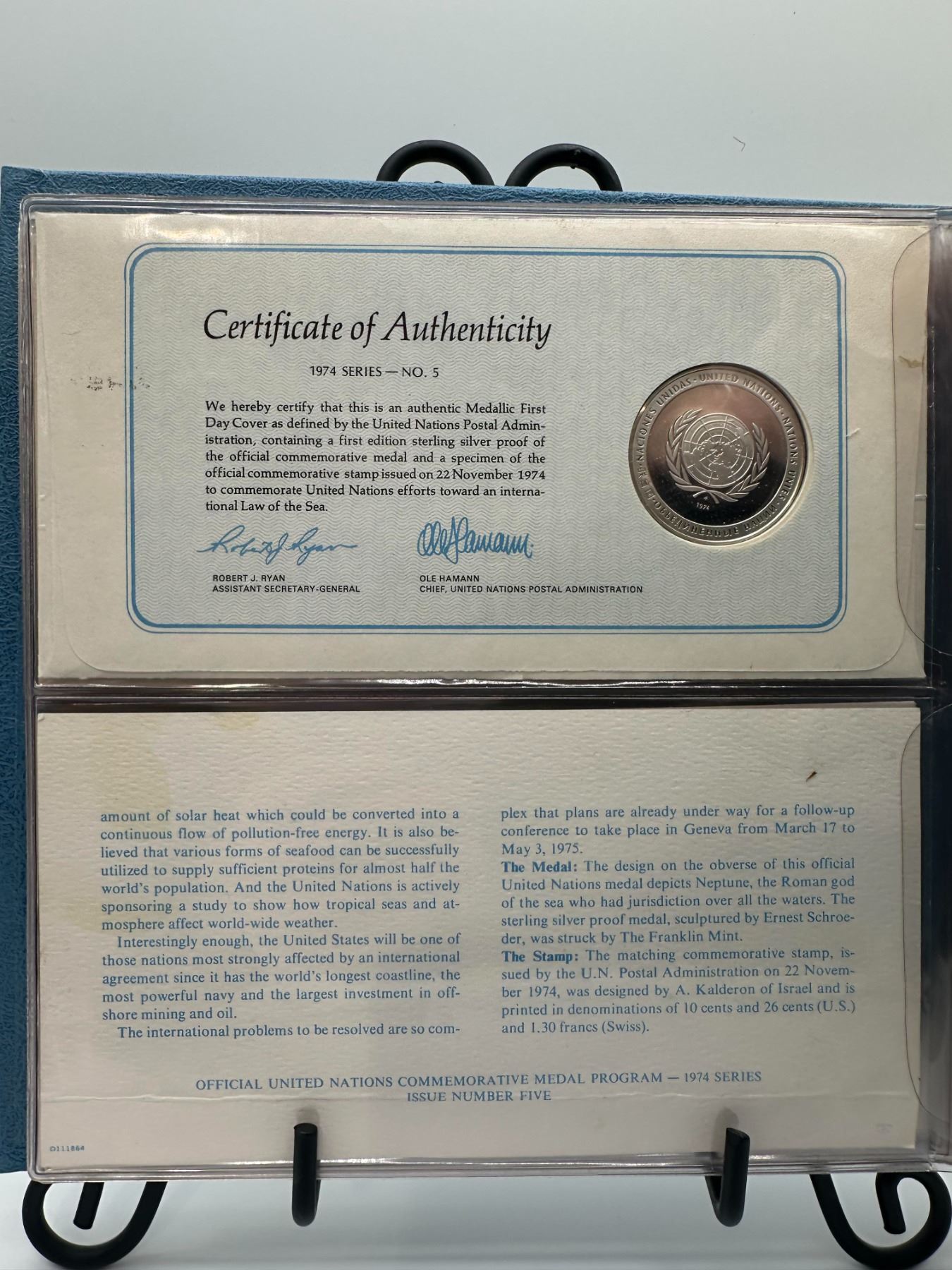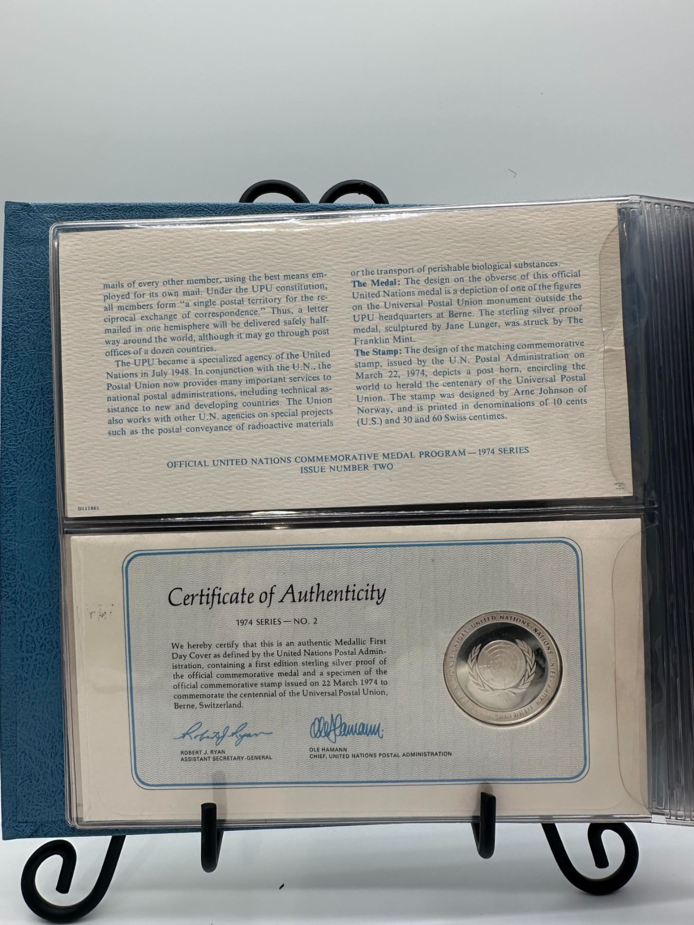 Lot 11 1974 United Nations Silver Medallion Cover Album