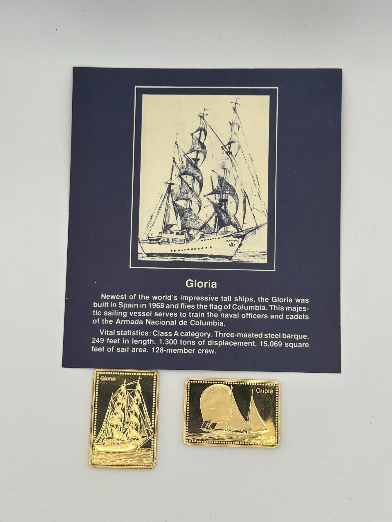 Lot 19 Gloria & Oriole Tall Ships Gold-Plated Silver Bars (Franklin Mint Style)