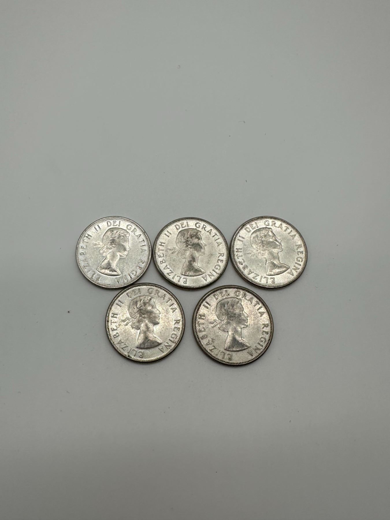 Lot 26 Canada Silver 50 Cents Lot (5 Coins, 1950s–1960s)